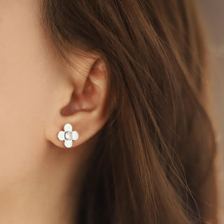 高品質真鍮 A3ランクジルコニア ピアス フラワー 花 アイスドアウト ヒップホップ【NJ00051-4】