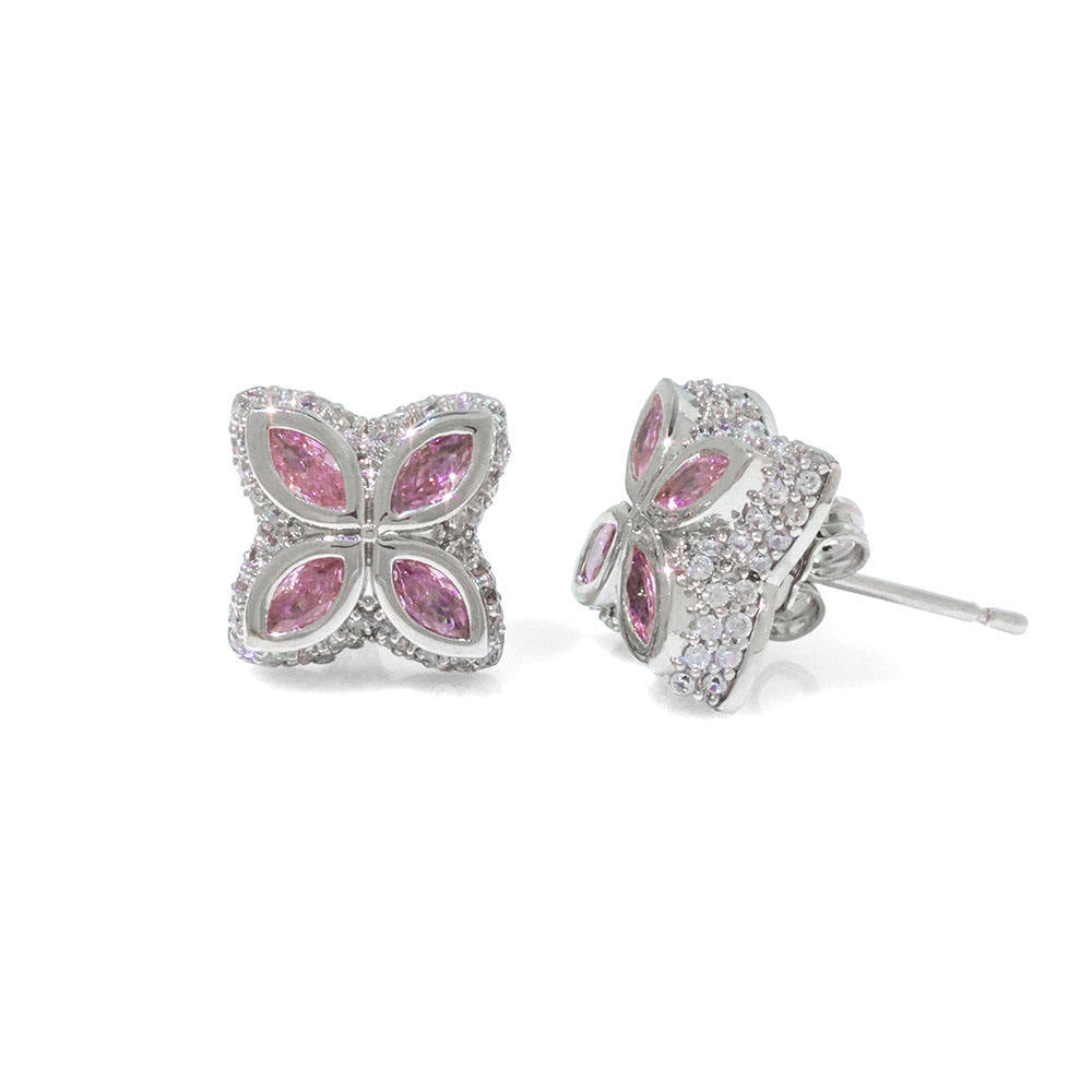 高品質真鍮 A3ランクジルコニア ピアス フラワー 花 アイスドアウト ヒップホップ【NJ00051-3】