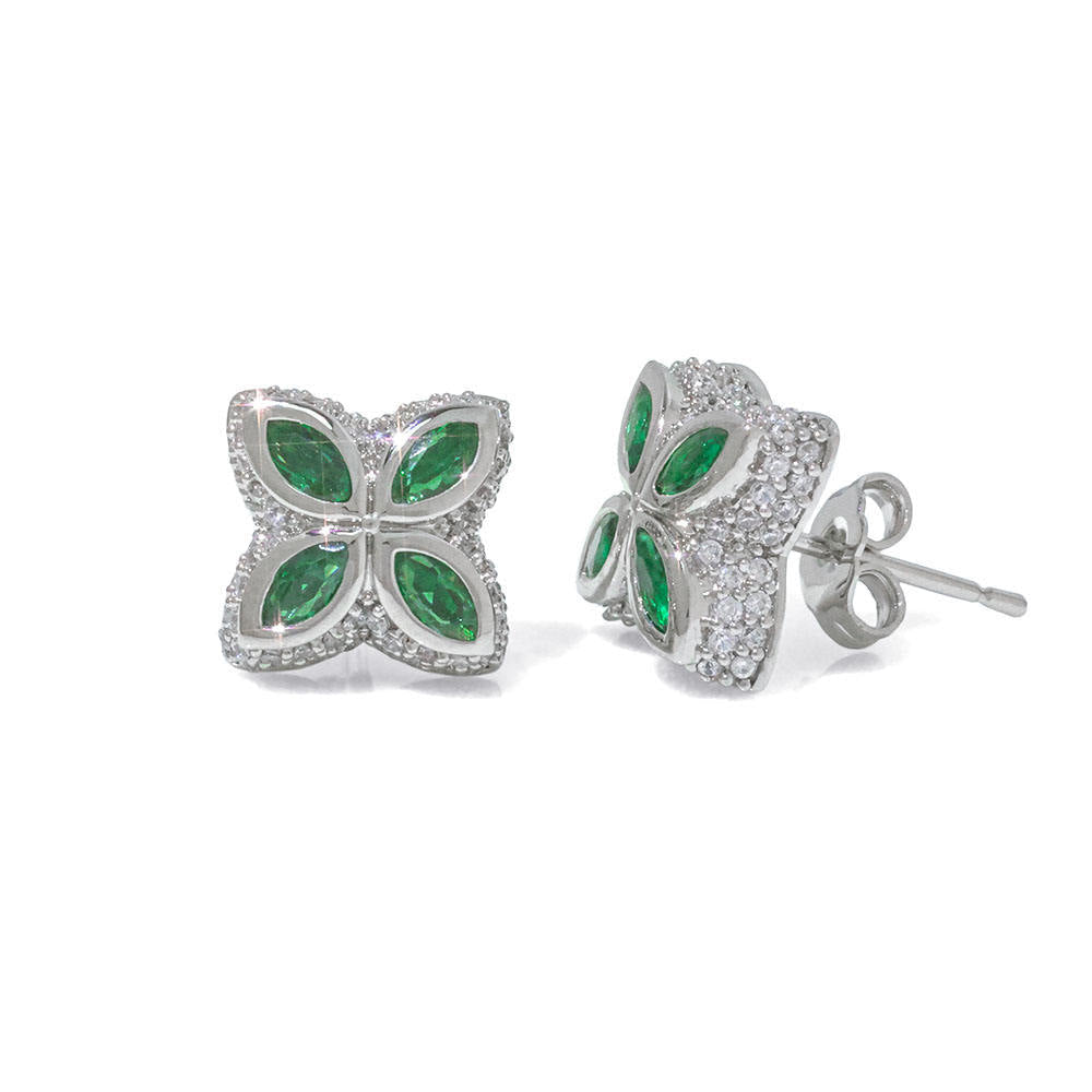 高品質真鍮 A3ランクジルコニア ピアス フラワー 花 アイスドアウト ヒップホップ【NJ00051-4】