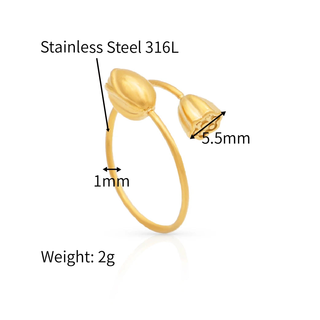 316Lサージカルステンレス 18Kゴールドメッキ リング 花 フラワー【NY00497】