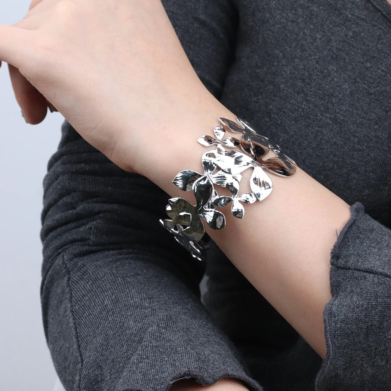 316Lサージカルステンレス ブレスレット 花 フラワー チャンキー 【NY00551】