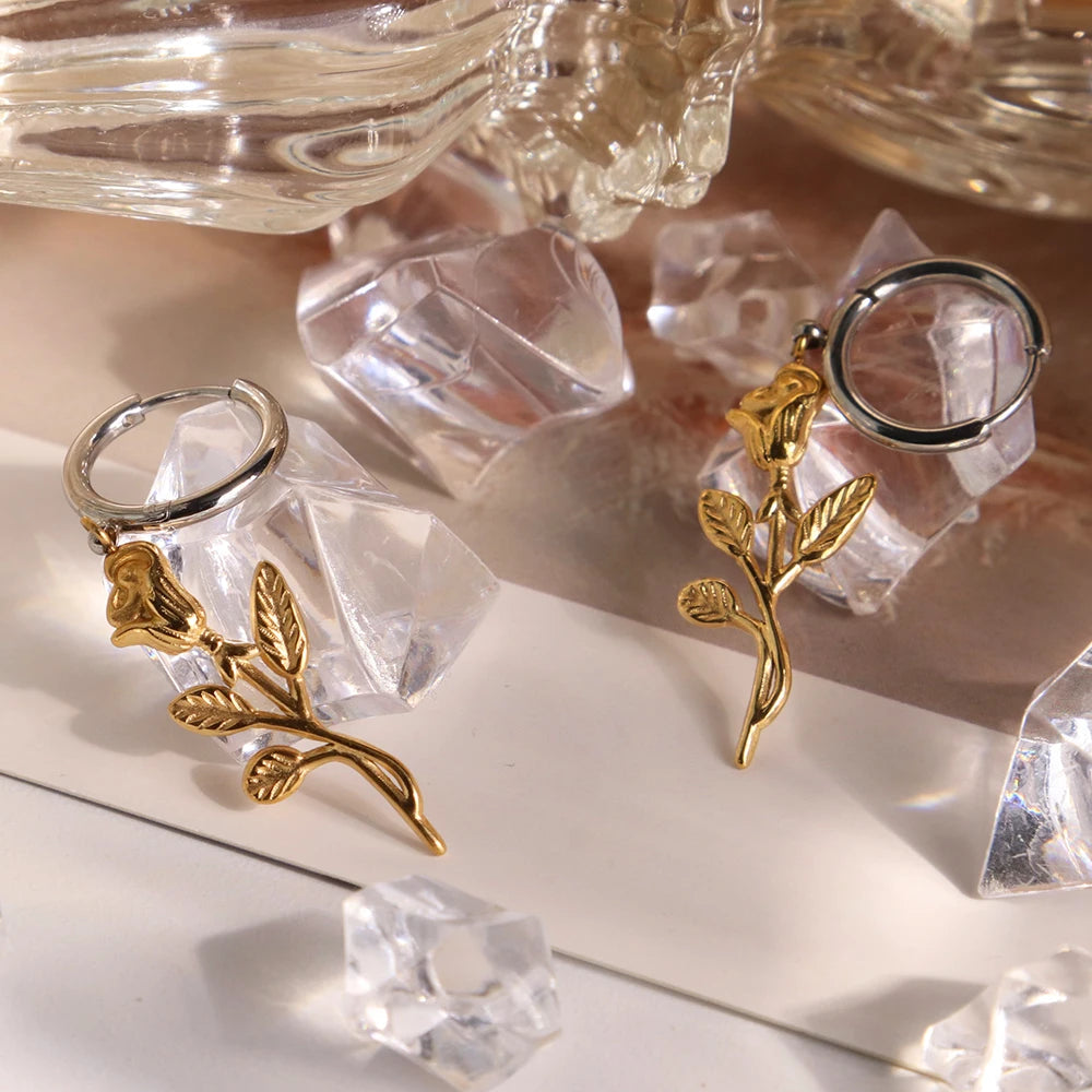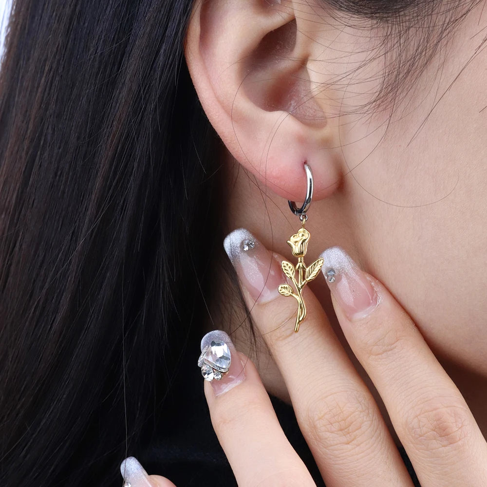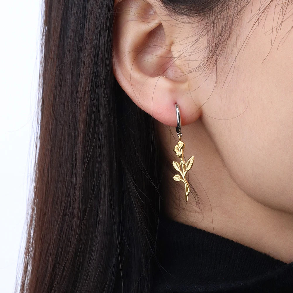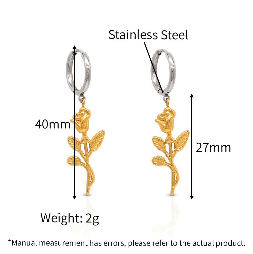 316Lサージカルステンレス ピアス フープ チャーム フラワー 花 薔薇 ローズ 【NY00588】