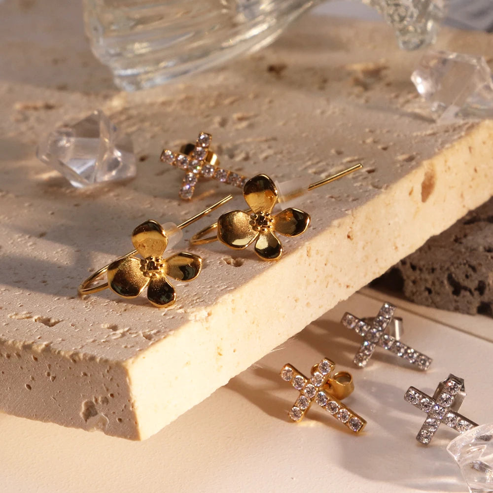 - ピアスのポスト部分は素材の特性上、キャッチがきつく感じられる場合や、スムーズに取り外せないことがありますが、これは不良品ではありませんのでご了承ください。特に新品時はゴールドメッキコーティングの厚みにより、やや固めに感じることがございます。無理に力を加えるとポストの曲がりや破損につながる可能性があるため、優しくゆっくりと着脱いただくことをおすすめします。