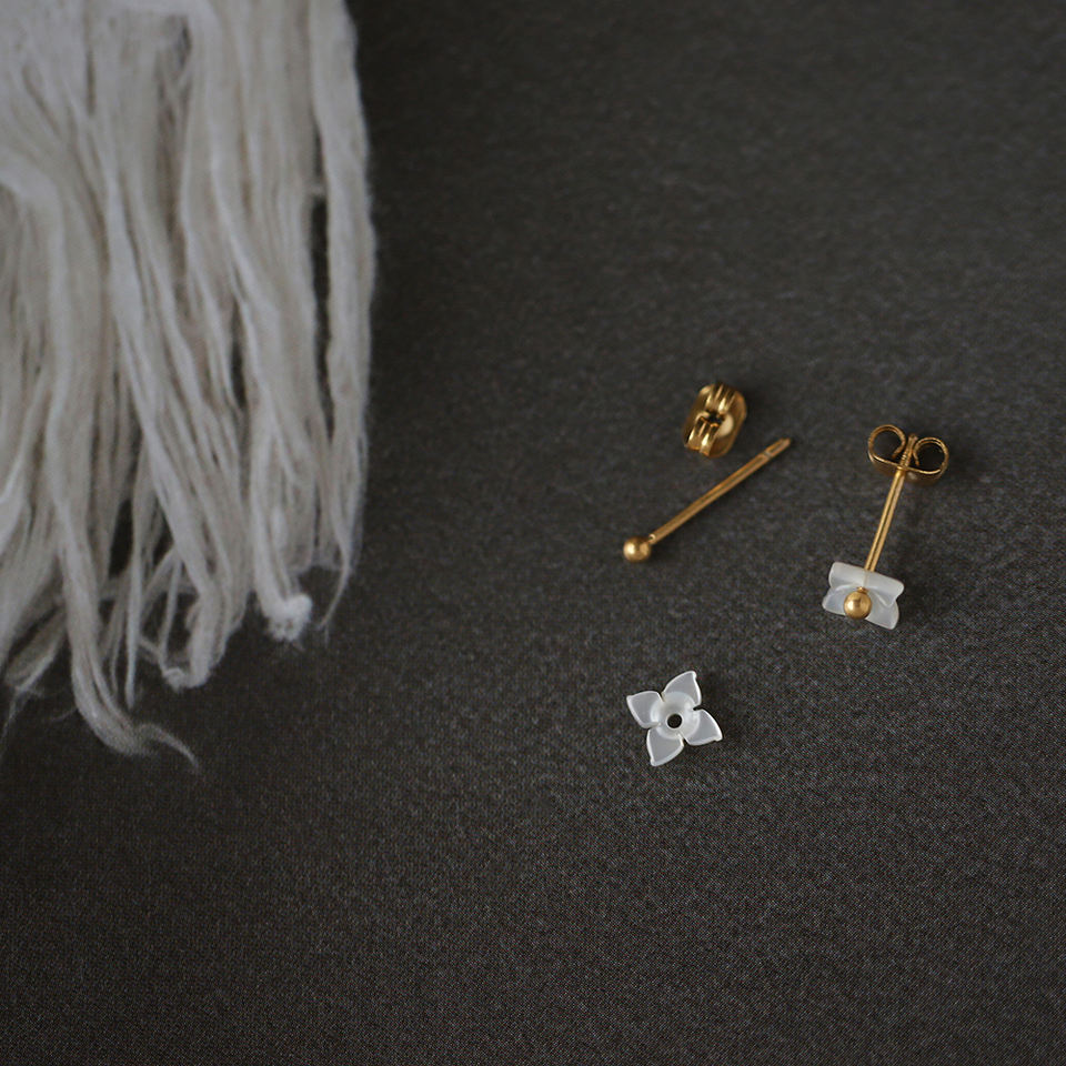 - ピアスのポスト部分は素材の特性上、キャッチがきつく感じられる場合や、スムーズに取り外せないことがありますが、これは不良品ではありませんのでご了承ください。特に新品時はゴールドメッキコーティングの厚みにより、やや固めに感じることがございます。無理に力を加えるとポストの曲がりや破損につながる可能性があるため、優しくゆっくりと着脱いただくことをおすすめします。