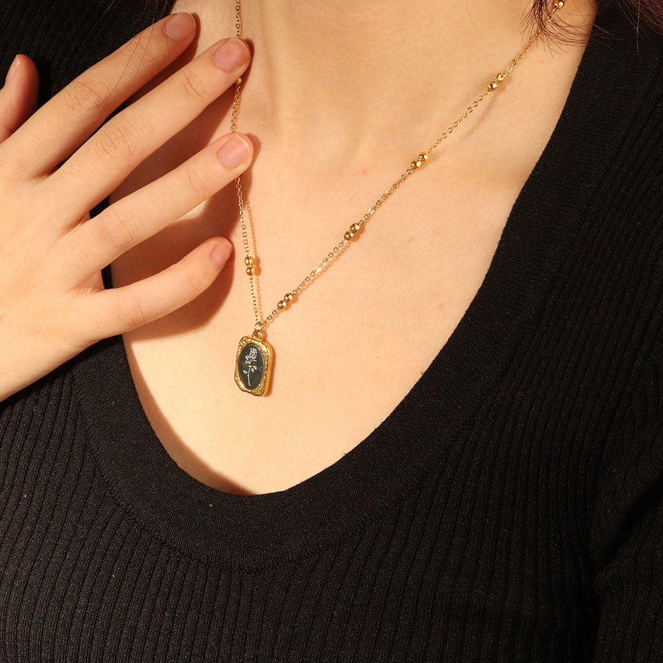 316Lサージカルステンレス ネックレス チェーン フラワー 花 薔薇 バラ 【NY01322】