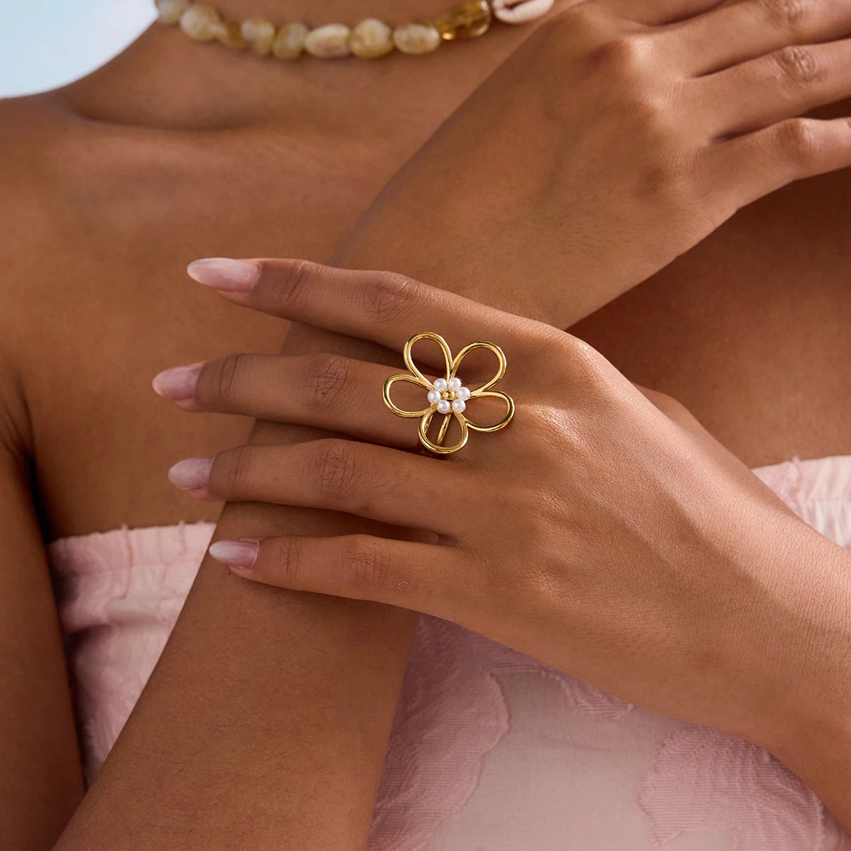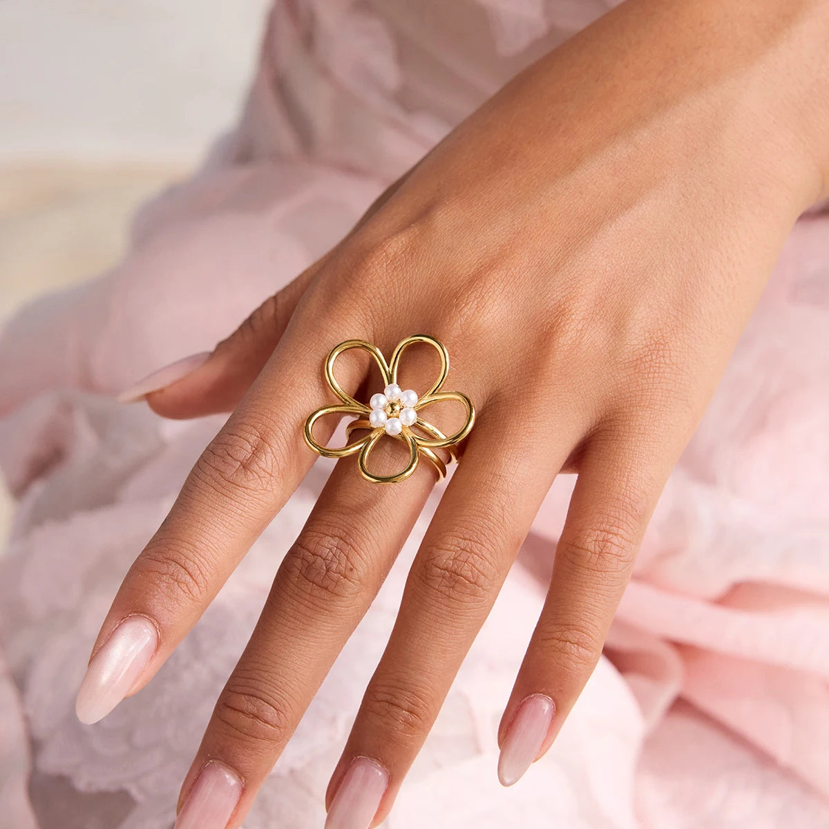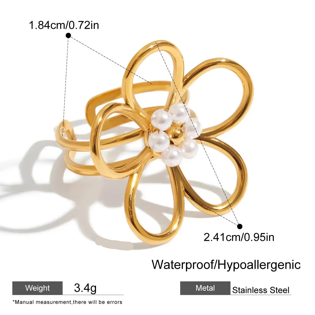ステンレス304 ニッケルフリー 水に濡れても錆びにくい リング フラワー 花 パール 【YJ00388】