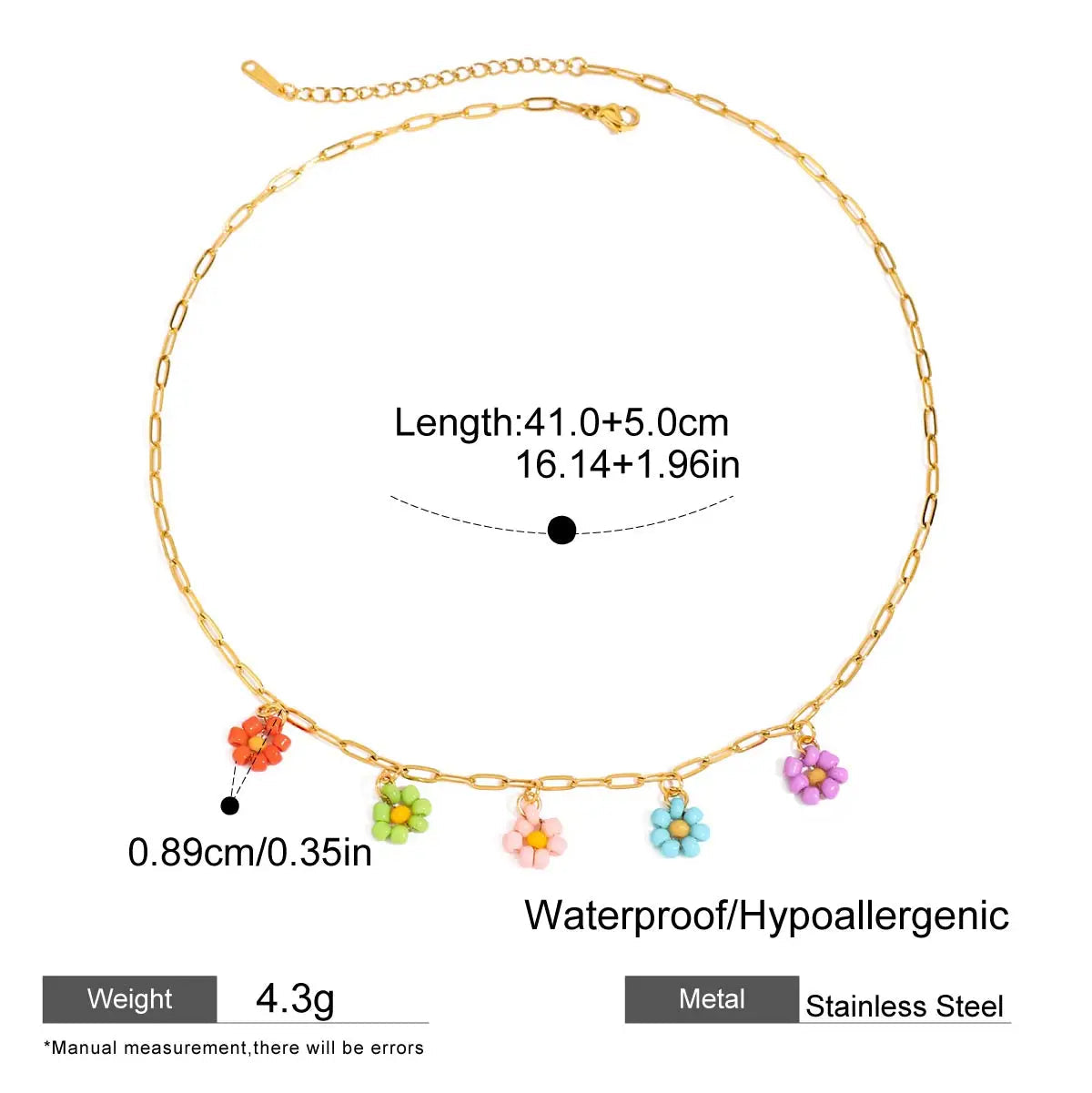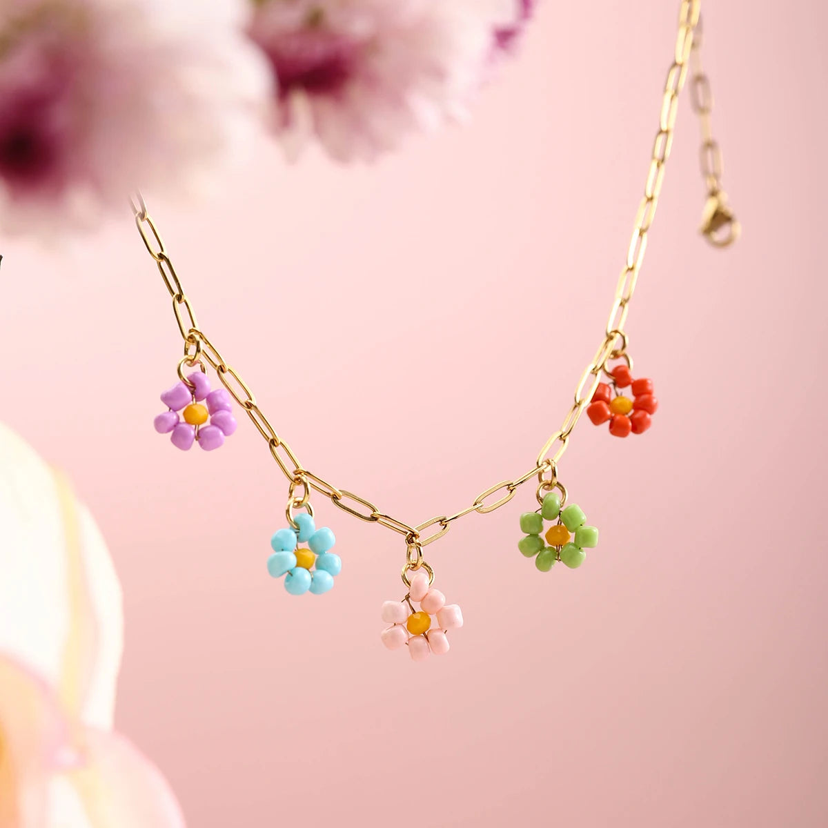 ステンレス304 ニッケルフリー 水に濡れても錆びにくい 18Kゴールドメッキ チャーム ネックレス フラワー 花 ビーズ【YJ00428】