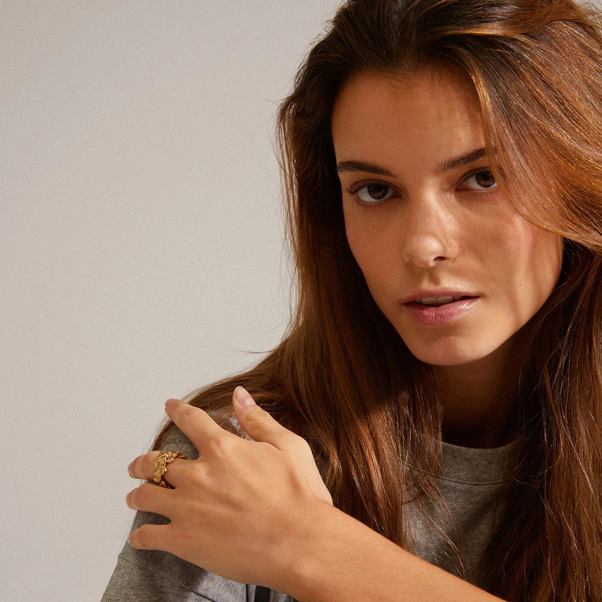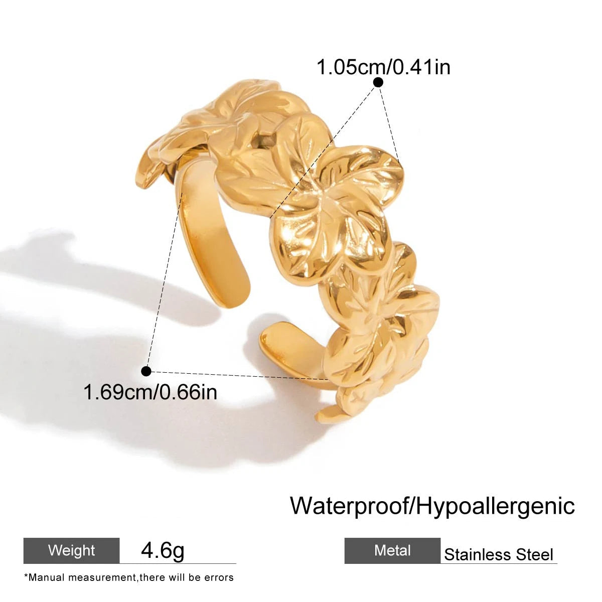 ステンレス304 低ニッケル 水に濡れても錆びにくい 18Kゴールドメッキ リング 花 フラワー【YJ01102】