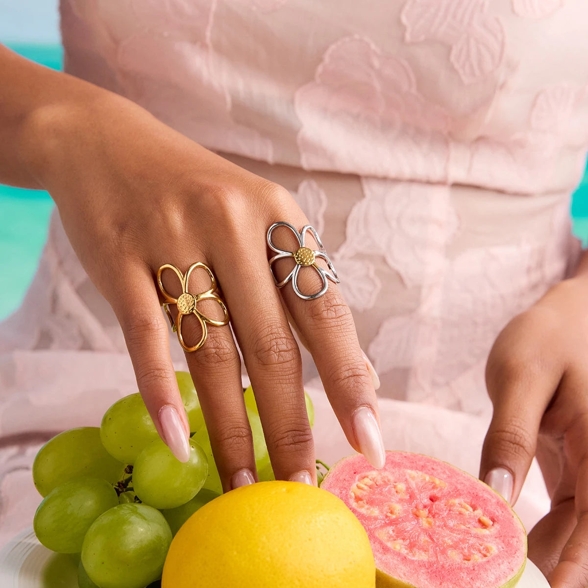 ステンレス304 低ニッケル 水に濡れても錆びにくい 18Kゴールドメッキ リング 花 フラワー【YJ01124】