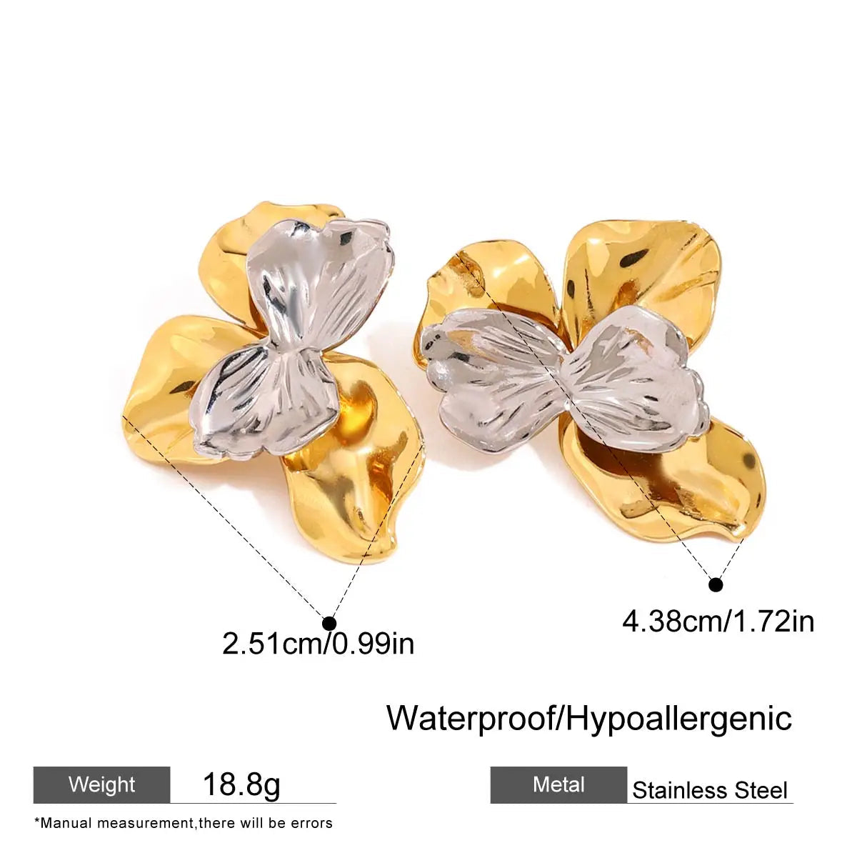 ステンレス304 低ニッケル 水に濡れても錆びにくい 18Kゴールドメッキ ピアス フラワー 花 【YJ01158】