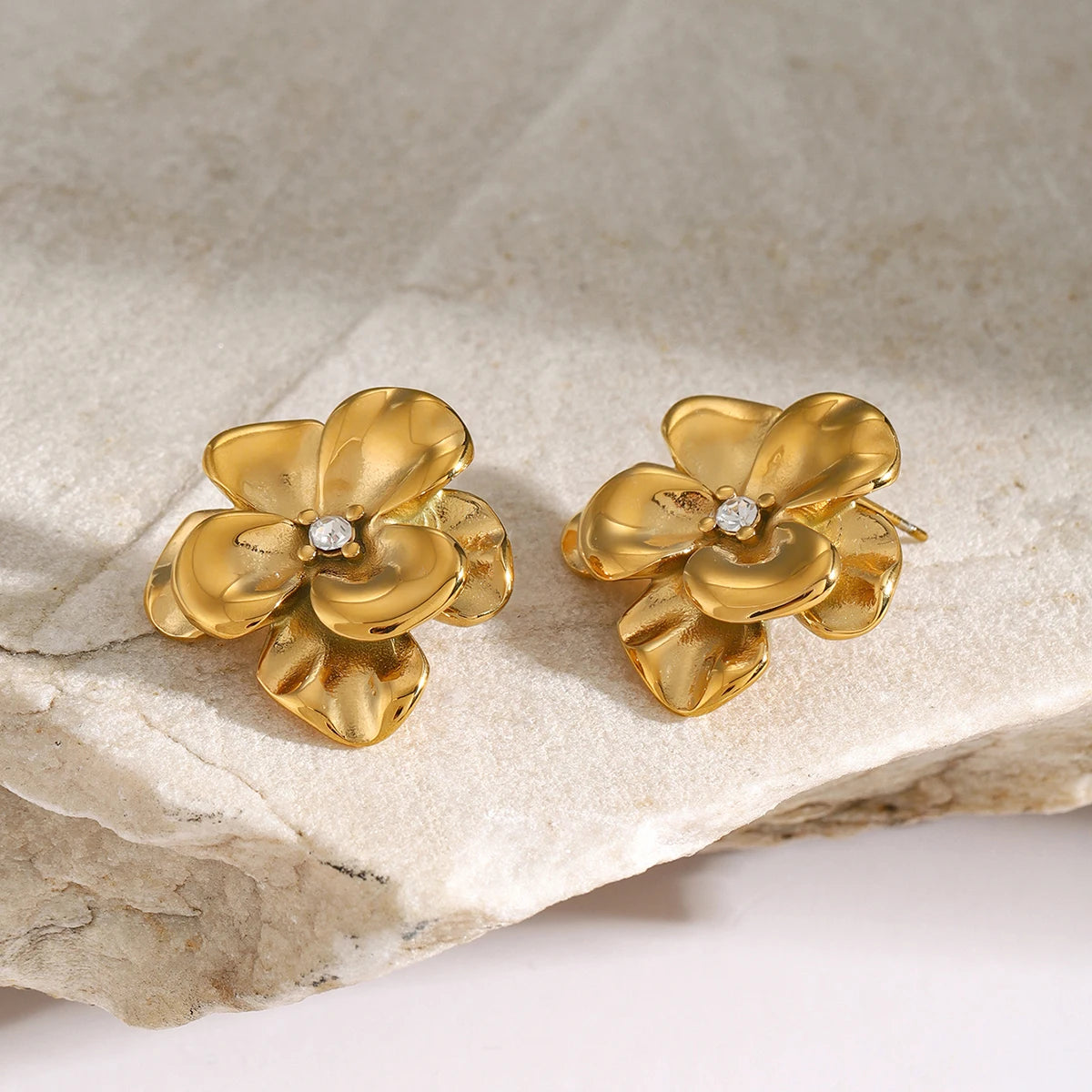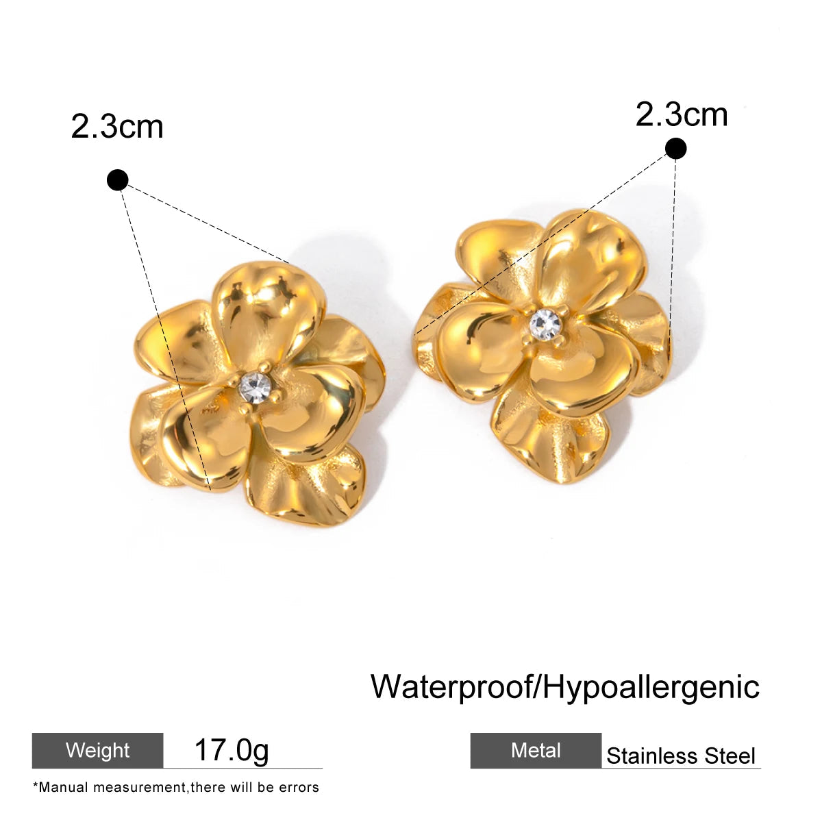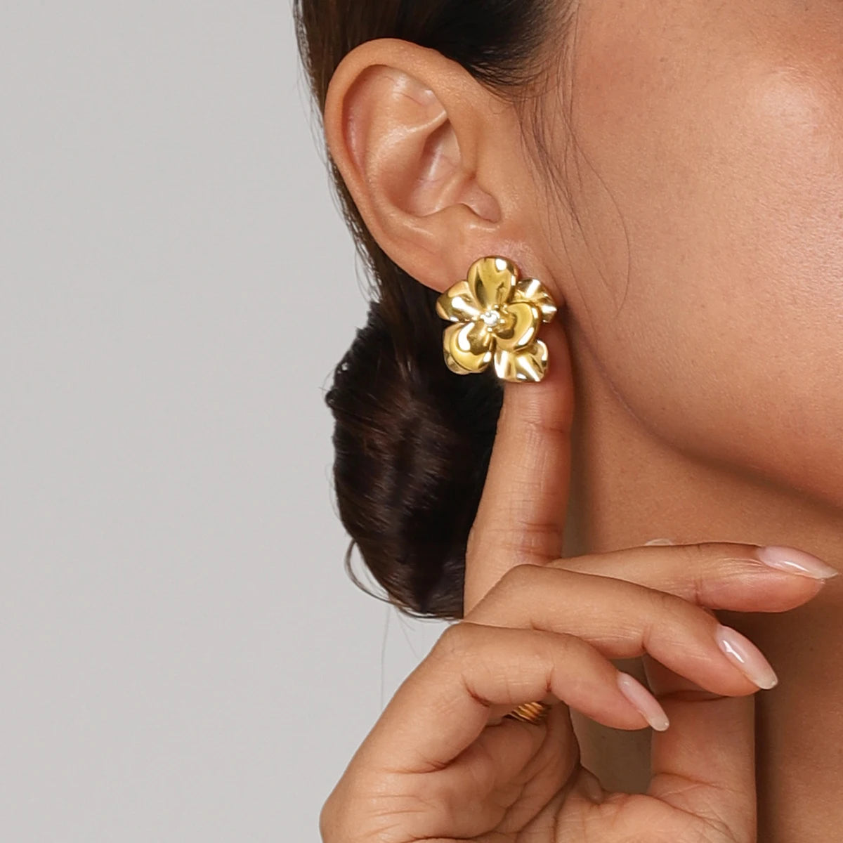 ステンレス304 低ニッケル 水に濡れても錆びにくい 18Kゴールドメッキ ピアス フラワー 花 【YJ01183】
