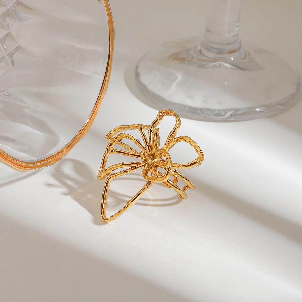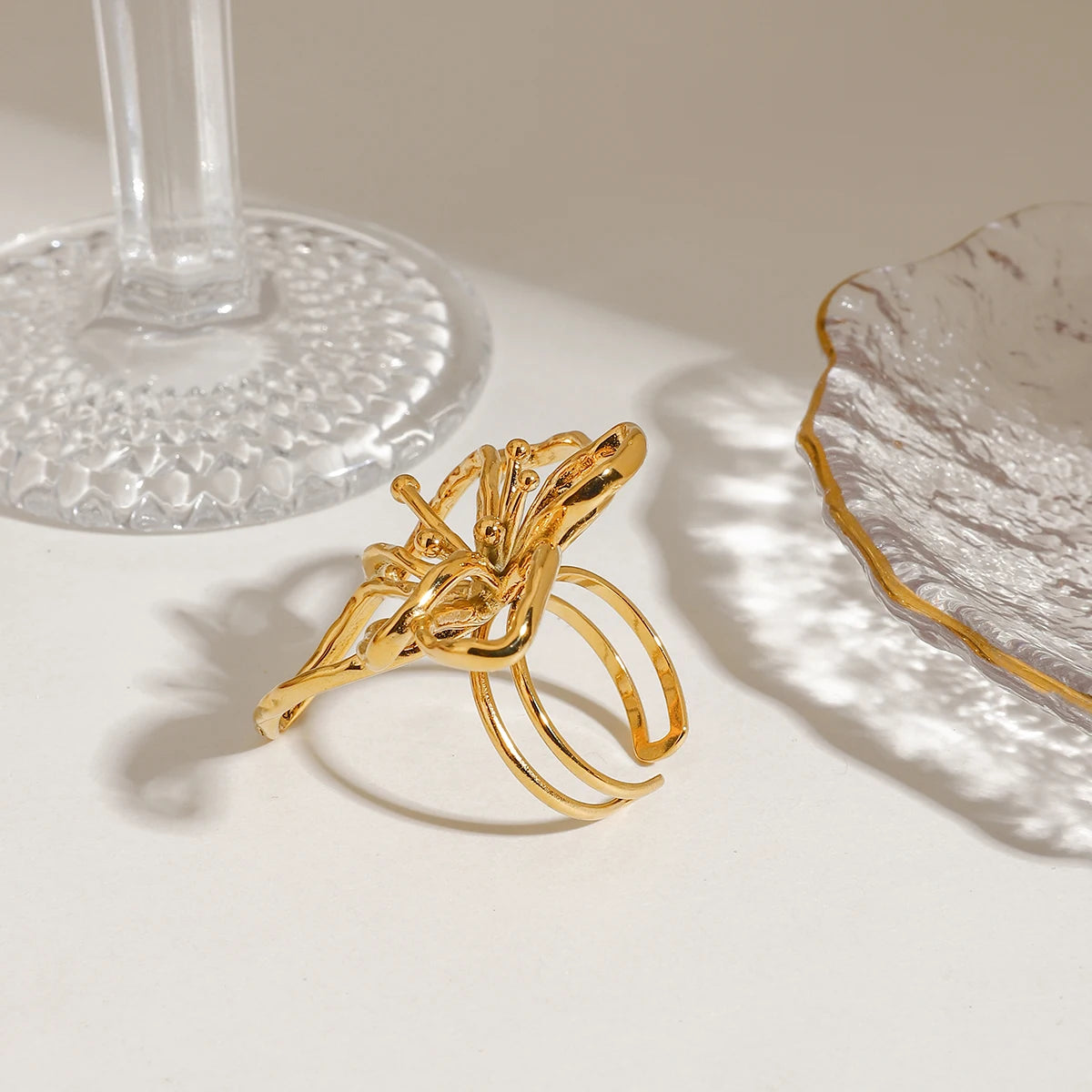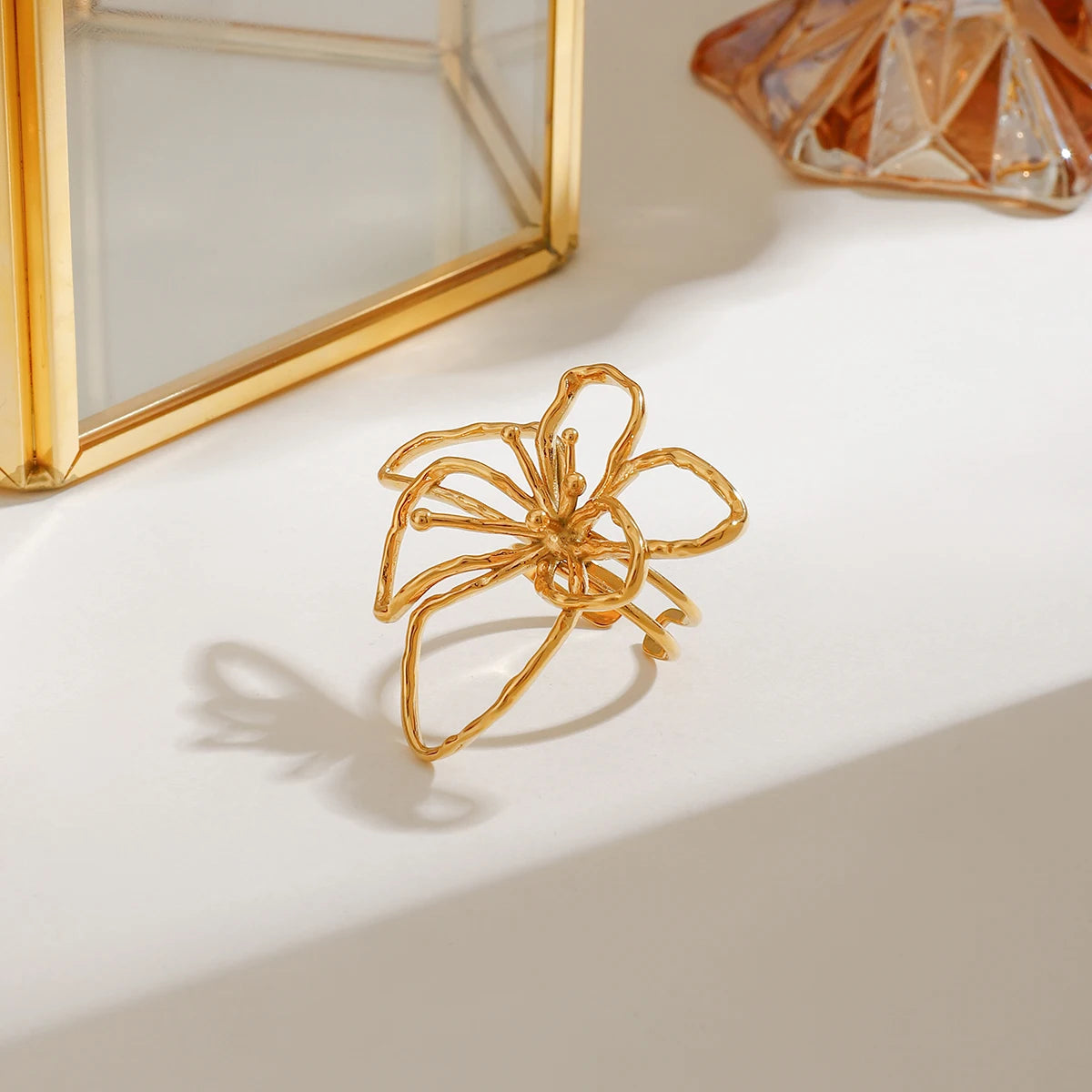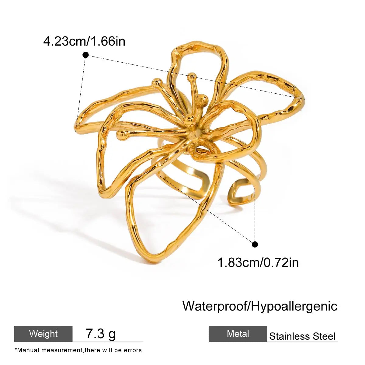 ステンレス304 低ニッケル 水に濡れても錆びにくい 18Kゴールドメッキ リング フラワー 花 【YJ01292】