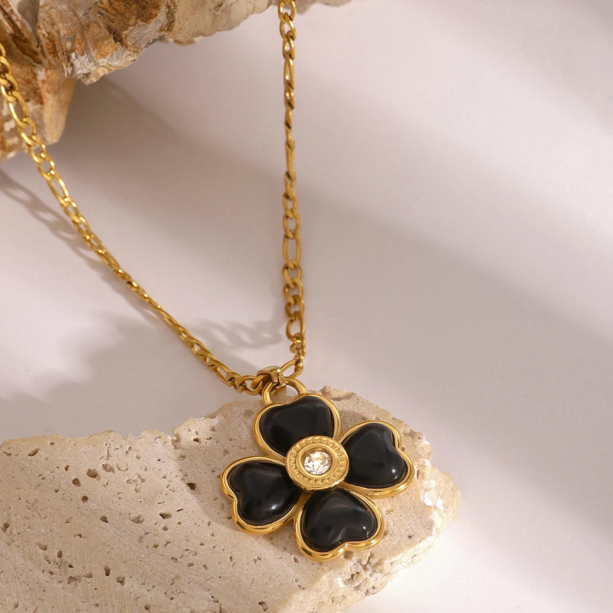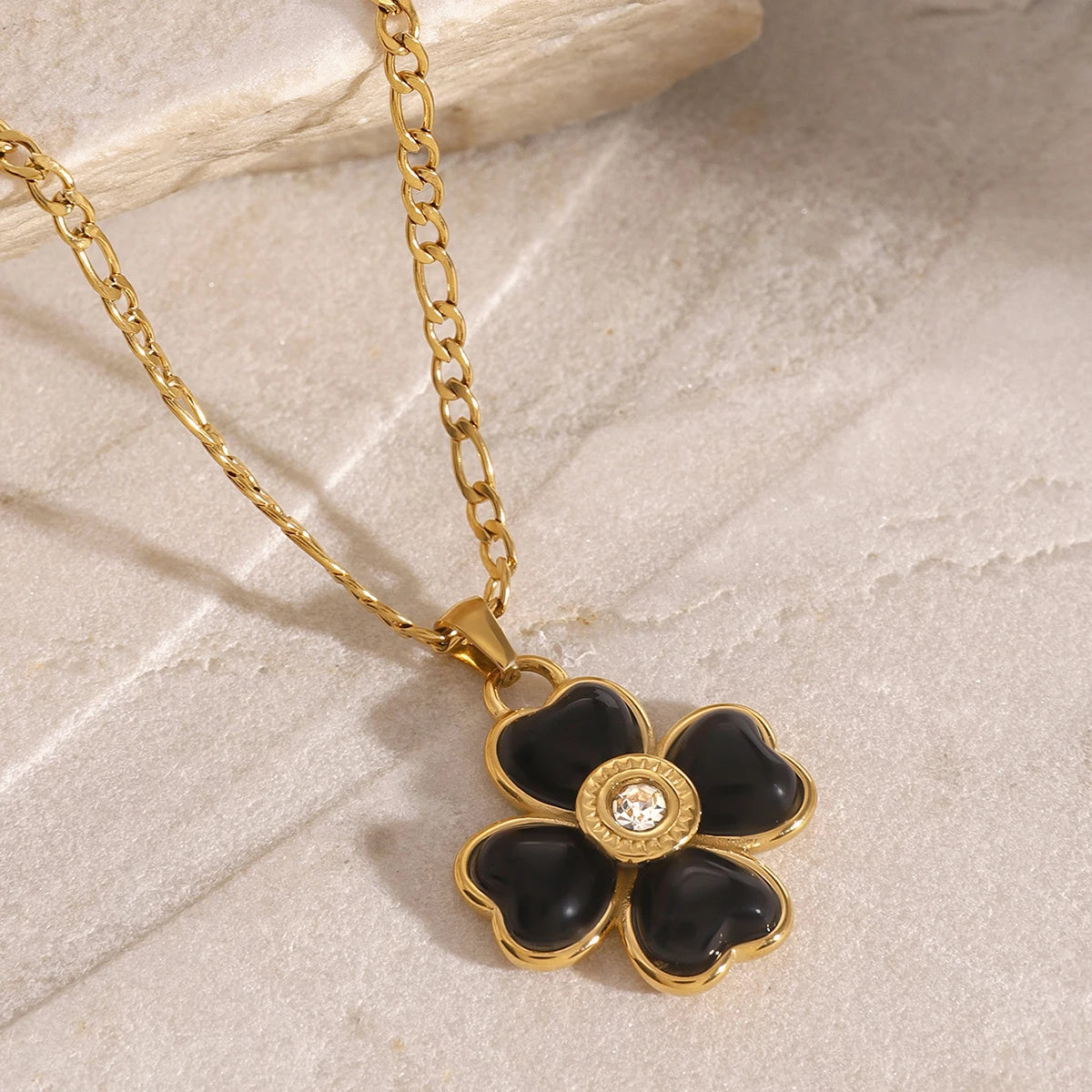 ステンレス304 低ニッケル 水に濡れても錆びにくい 18Kゴールドメッキ ネックレス フラワー 花 【YJ01436】