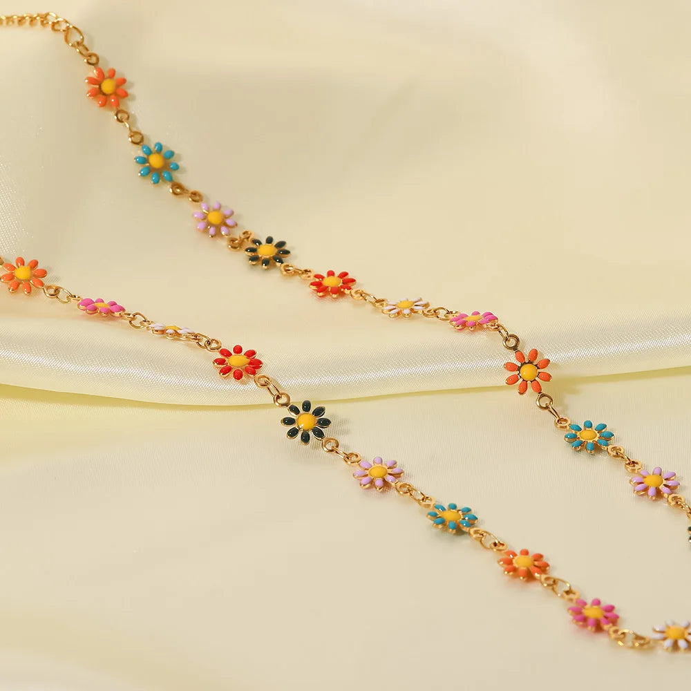 ステンレス304 低ニッケル 水に濡れても錆びにくい 18Kゴールドメッキ ネックレス フラワー 花 【YJ01699】