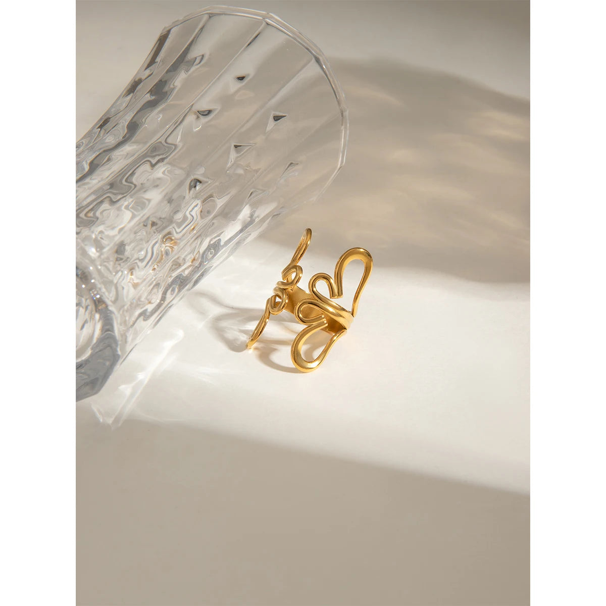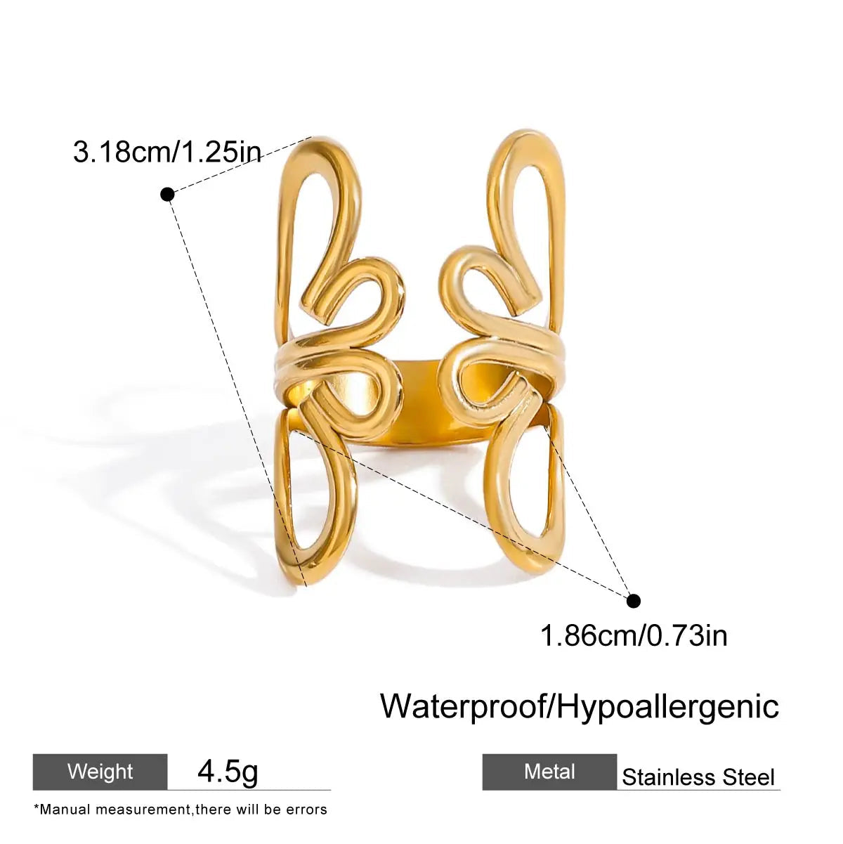 ステンレス304 低ニッケル 水に濡れても錆びにくい 18Kゴールドメッキ リング フラワー 花 【YJ01902】