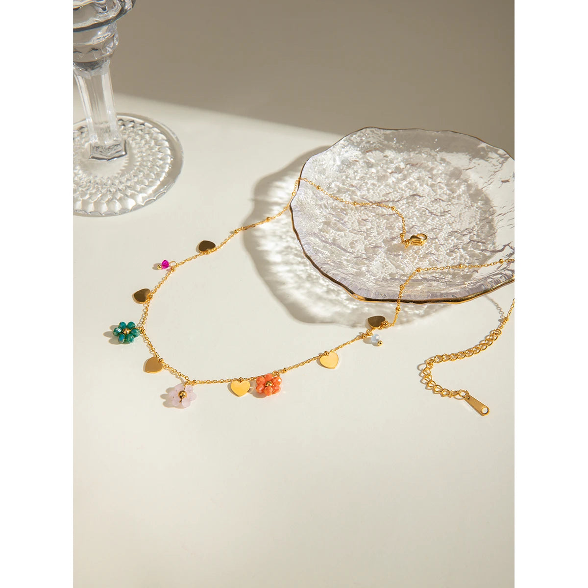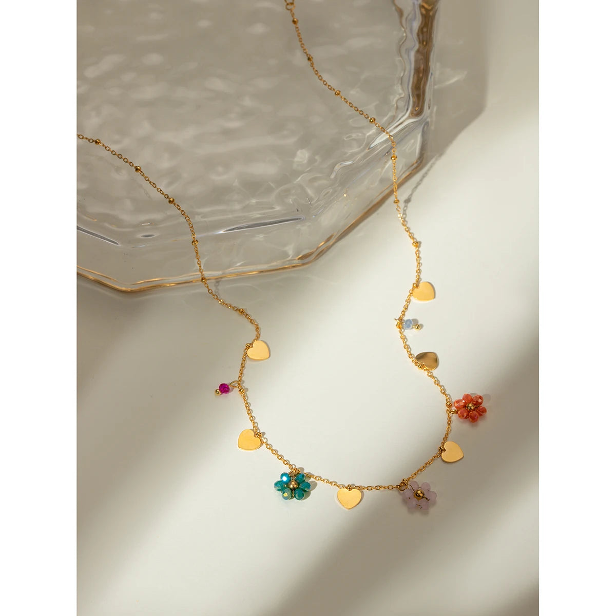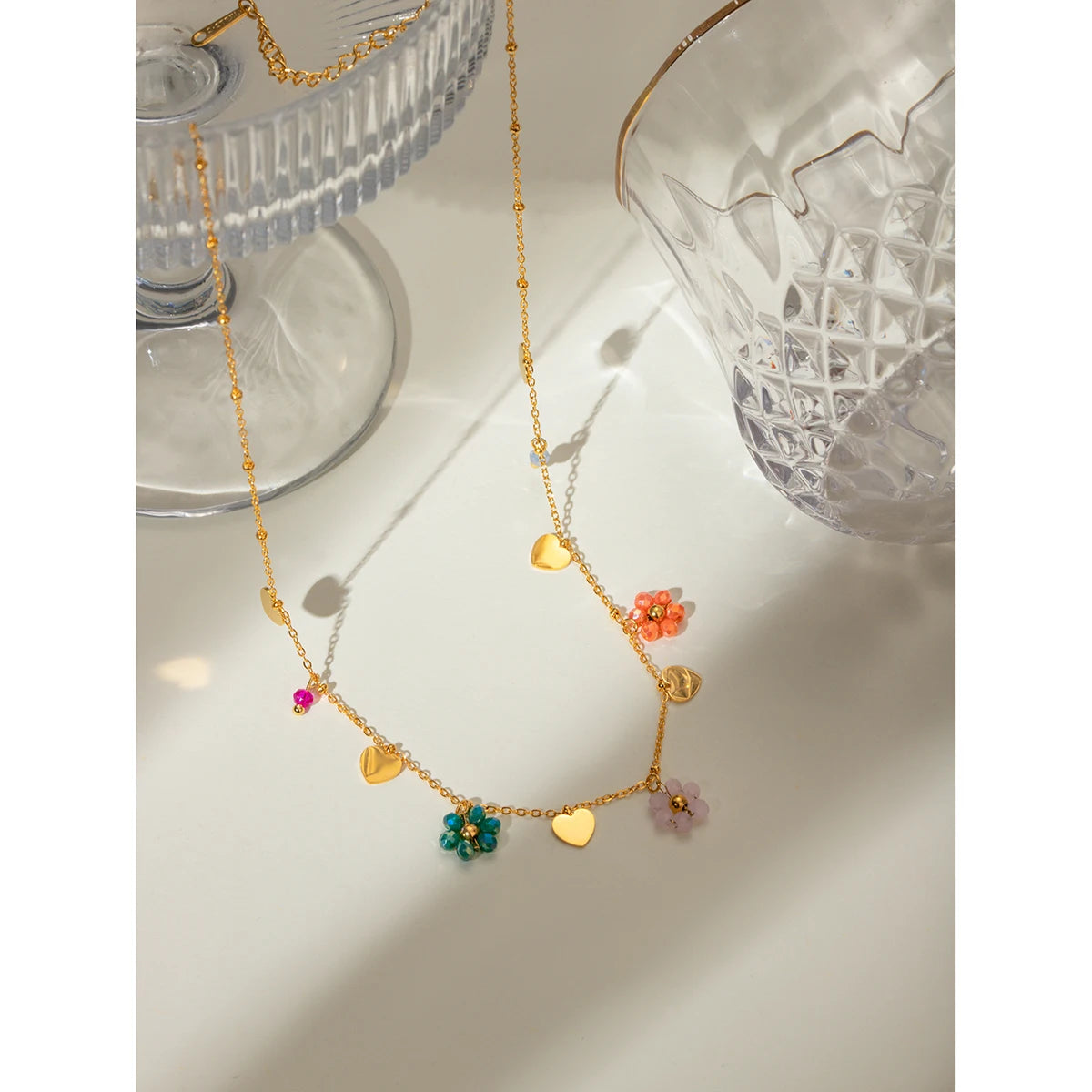 ステンレス304 低ニッケル 水に濡れても錆びにくい 18Kゴールドメッキ ネックレス チャーム ハート フラワー 花 【YJ02126】