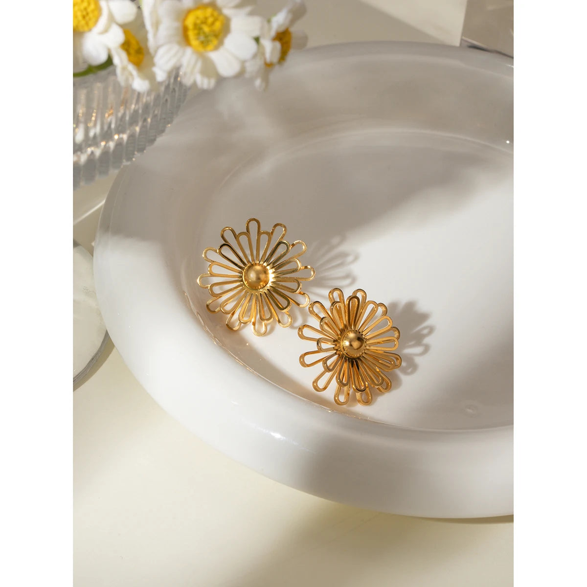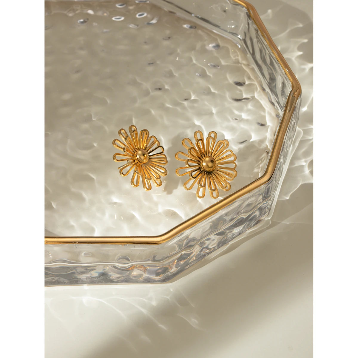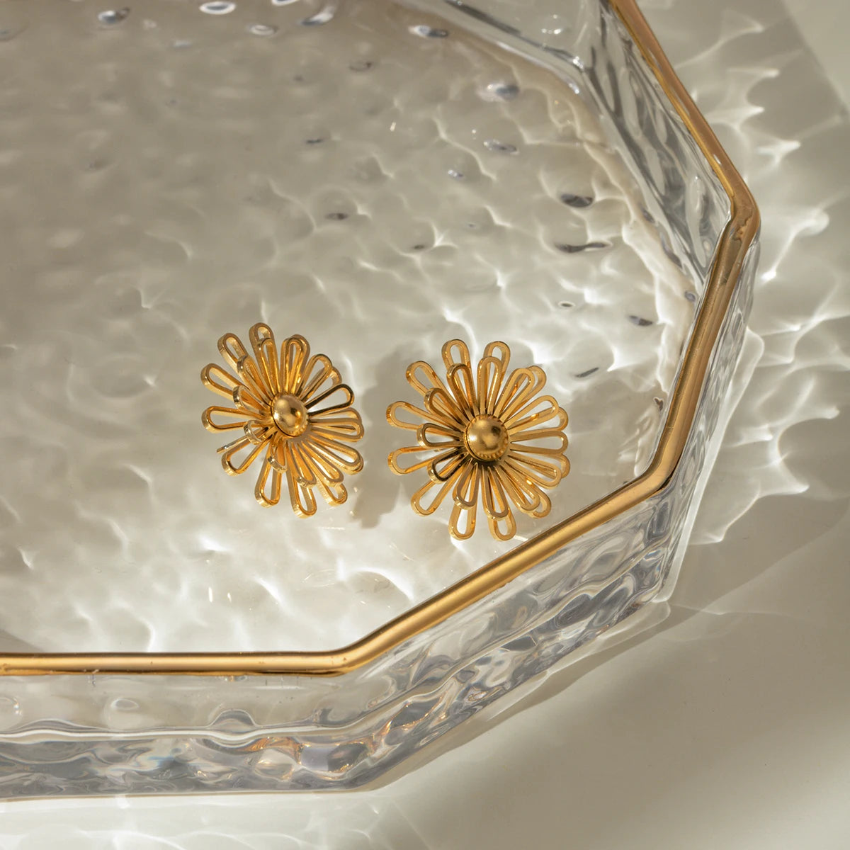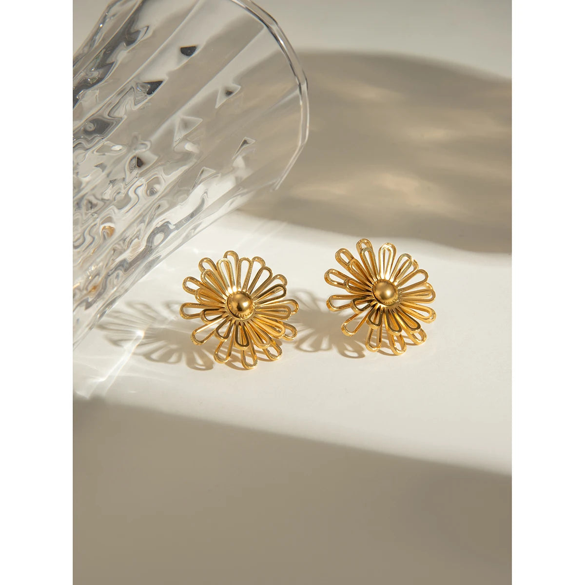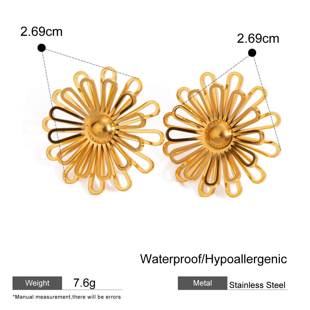 ステンレス304 低ニッケル 水に濡れても錆びにくい 18Kゴールドメッキ ピアス フラワー 花 【YJ02130】