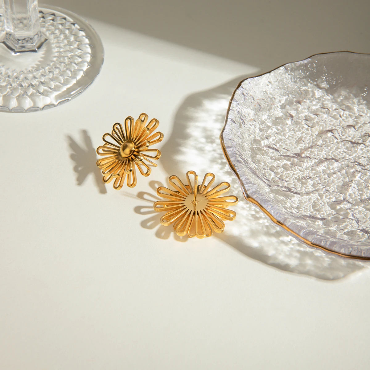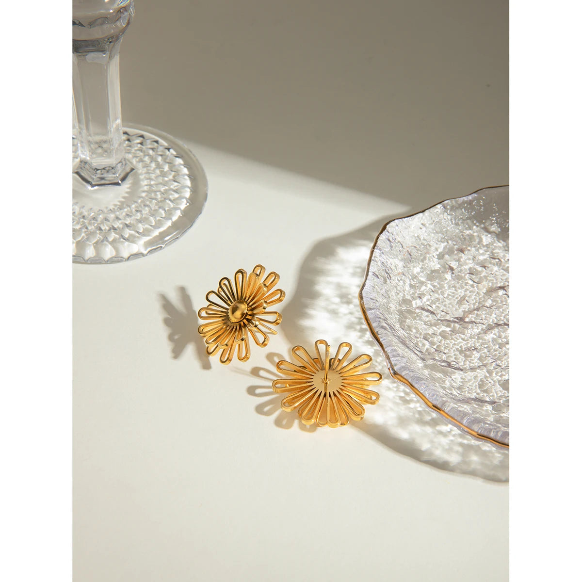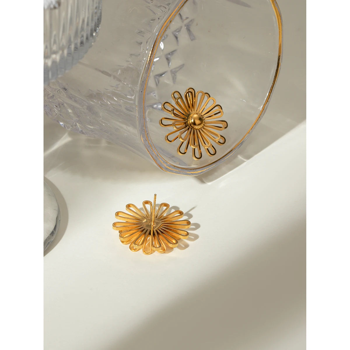- ピアスのポスト部分は素材の特性上、キャッチがきつく感じられる場合や、スムーズに取り外せないことがありますが、これは不良品ではありませんのでご了承ください。特に新品時はゴールドメッキコーティングの厚みにより、やや固めに感じることがございます。無理に力を加えるとポストの曲がりや破損につながる可能性があるため、優しくゆっくりと着脱いただくことをおすすめします。