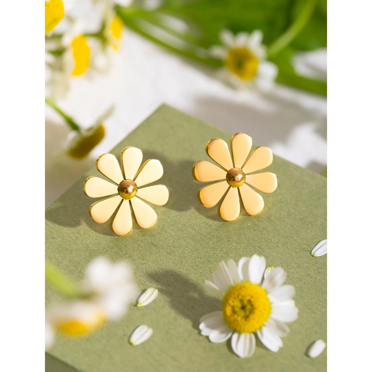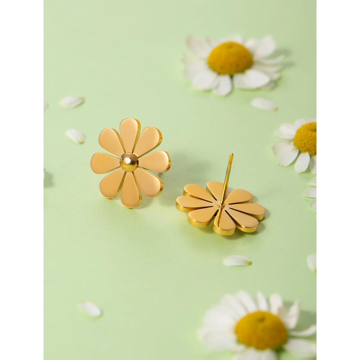 ステンレス304 低ニッケル 水に濡れても錆びにくい 18Kゴールドメッキ ピアス フラワー 花 【YJ02307】