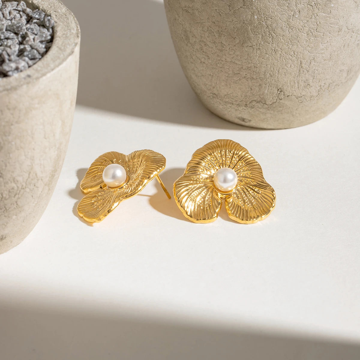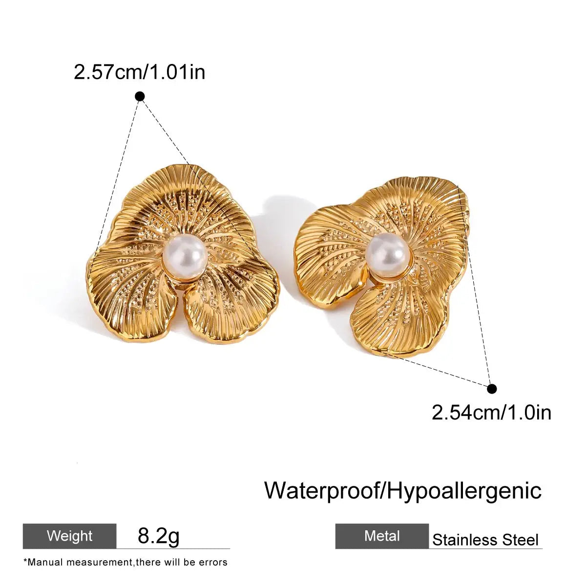 ステンレス304 低ニッケル 水に濡れても錆びにくい 18Kゴールドメッキ ピアス フラワー 花 【YJ02633】
