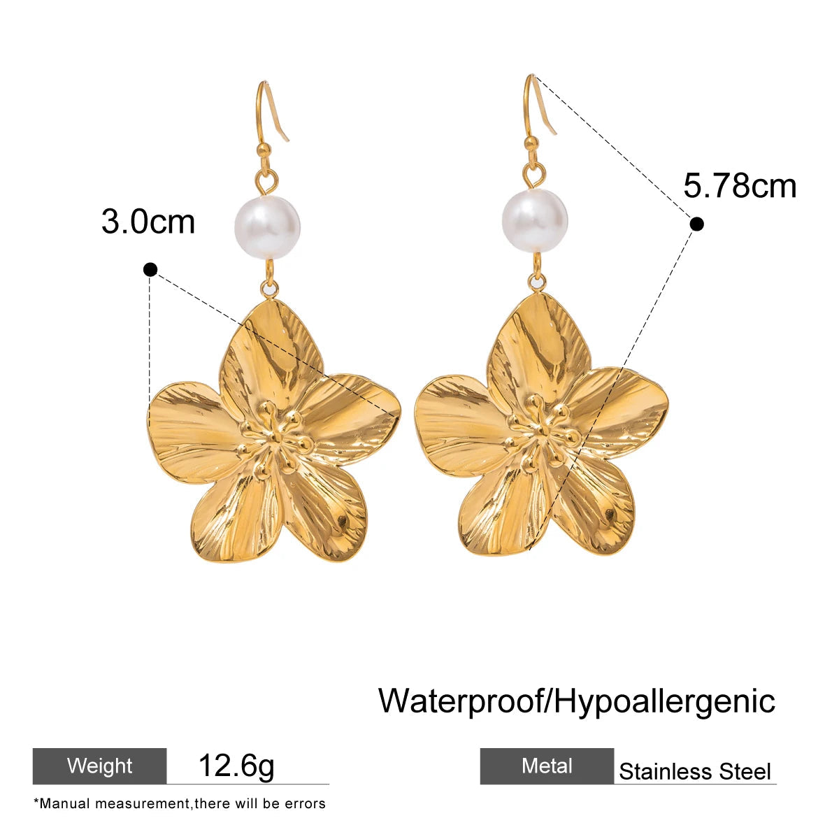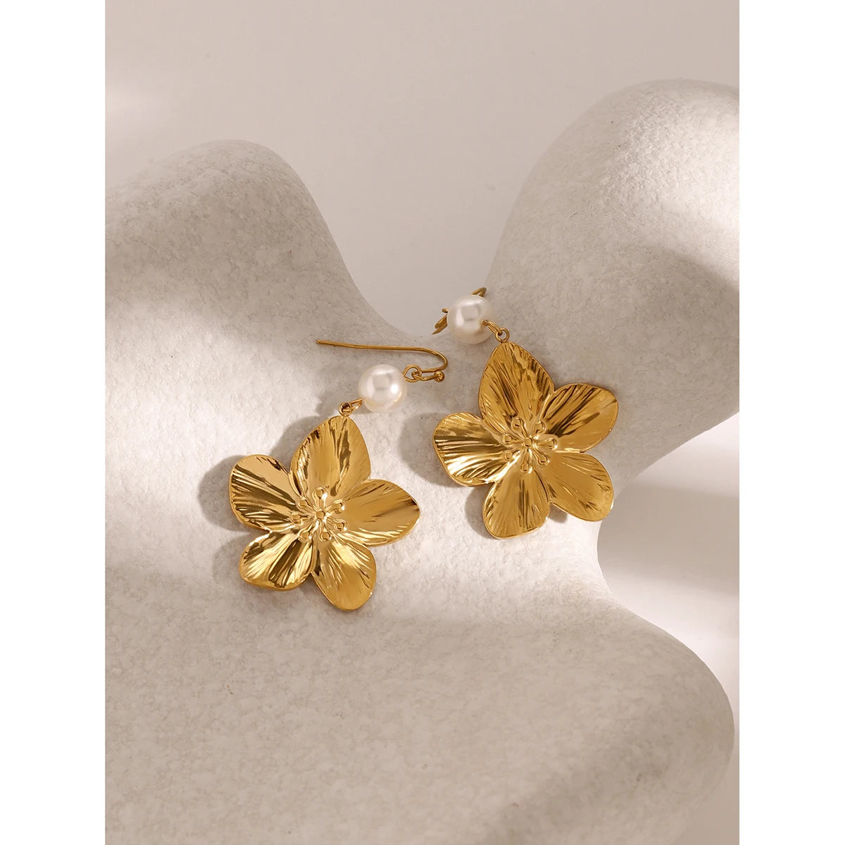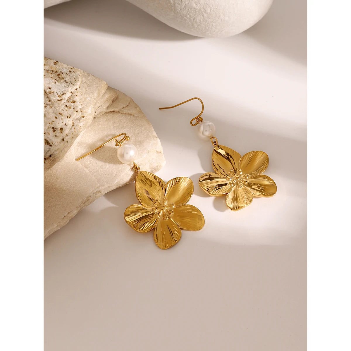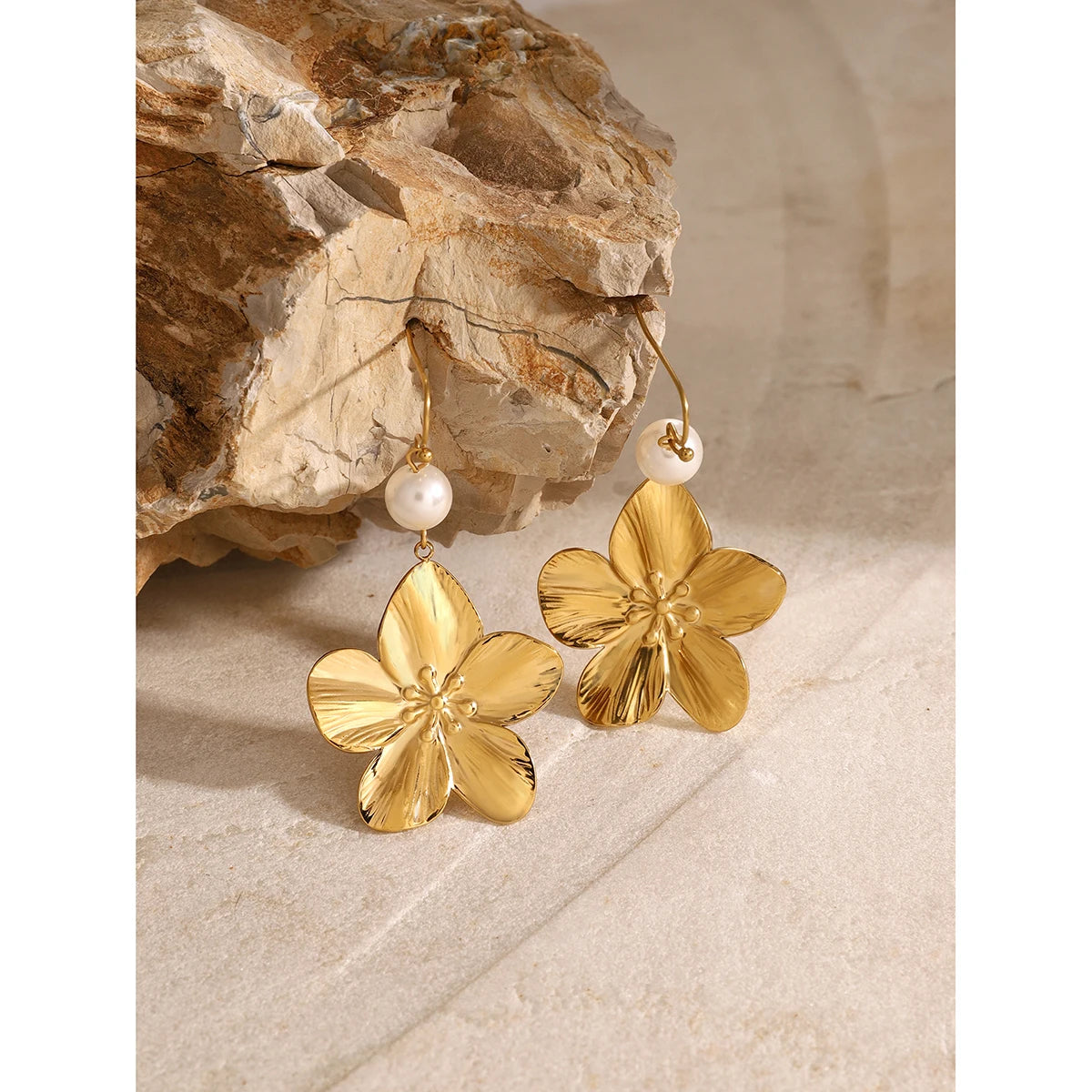 ステンレス304 低ニッケル 水に濡れても錆びにくい 18Kゴールドメッキ ピアス フラワー 花 パール 【YJ02675】