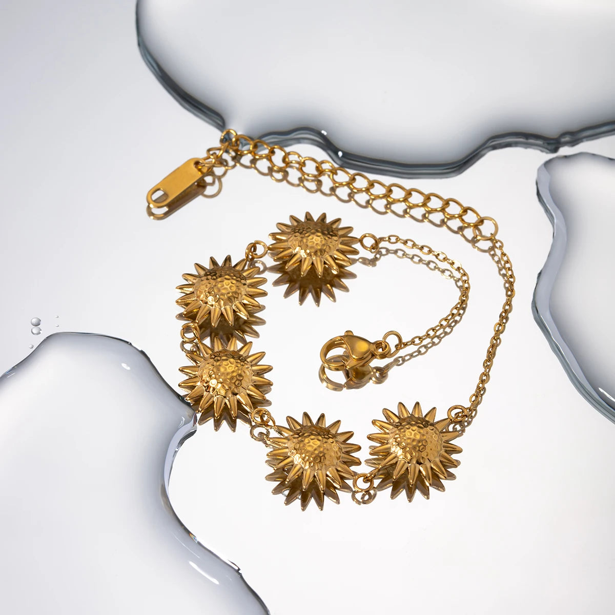 ステンレス304 低ニッケル 水に濡れても錆びにくい 18Kゴールドメッキ ブレスレット フラワー 花 【YJ02759】