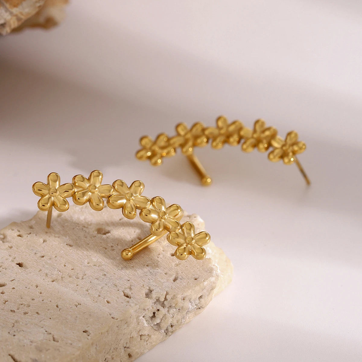 ステンレス304 低ニッケル 水に濡れても錆びにくい 18Kゴールドメッキ ピアス フラワー 花 【YJ02816】