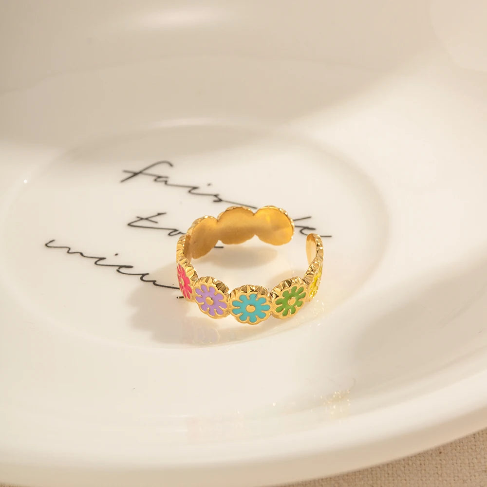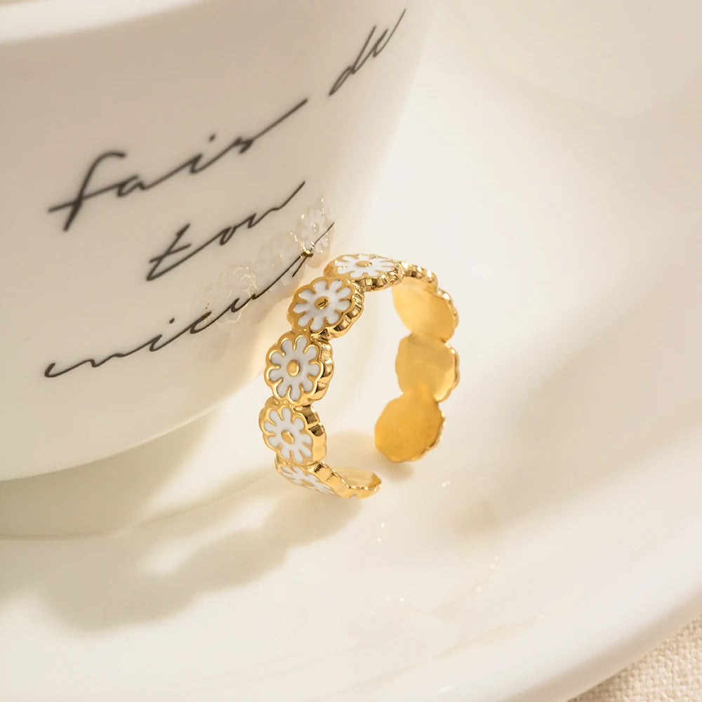 ステンレス304 低ニッケル 水に濡れても錆びにくい 18Kゴールドメッキ リング フラワー 花 【YJ03082】
