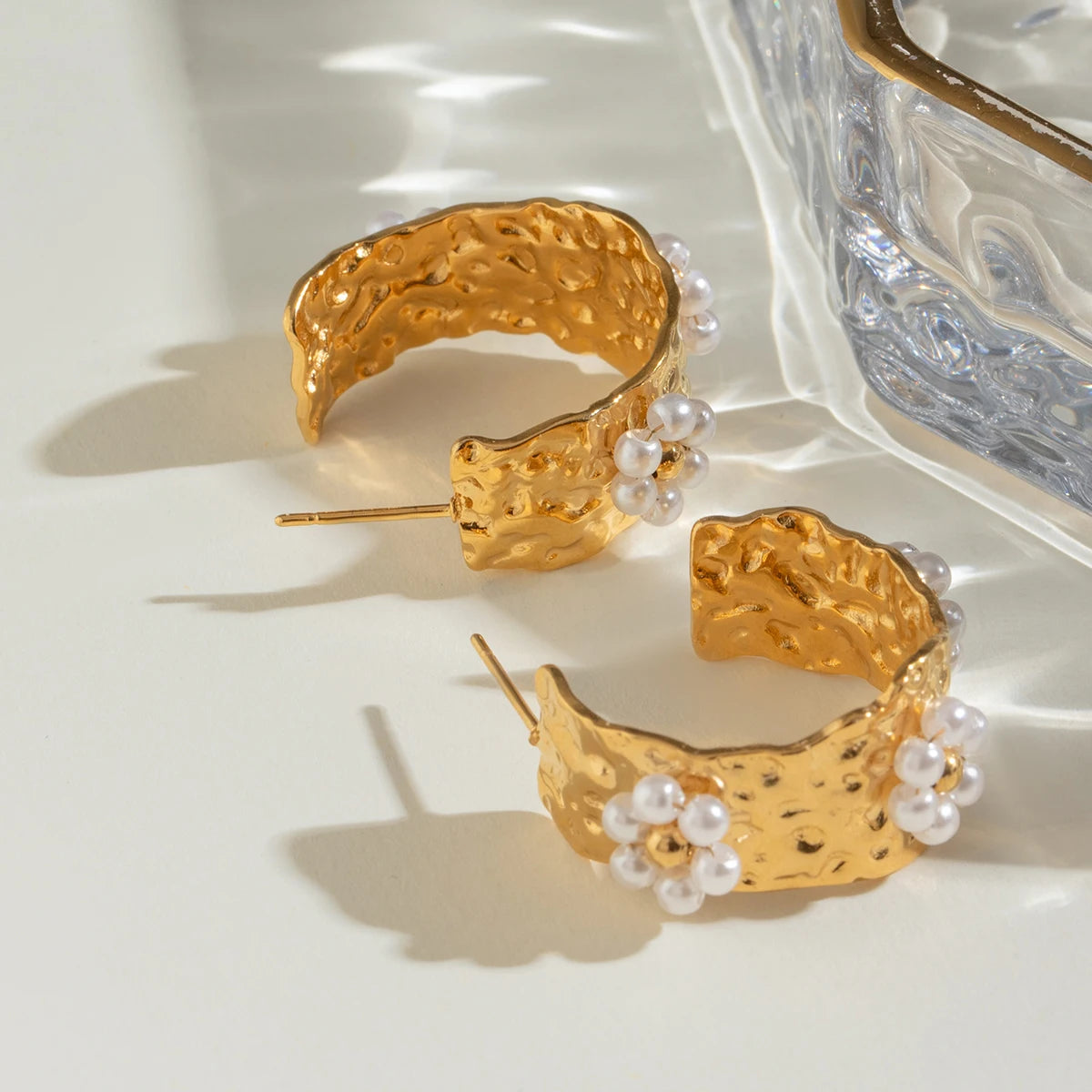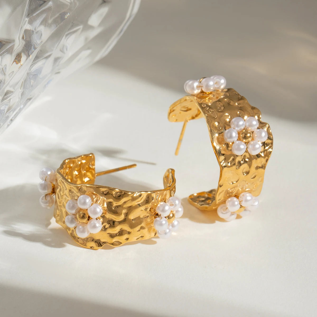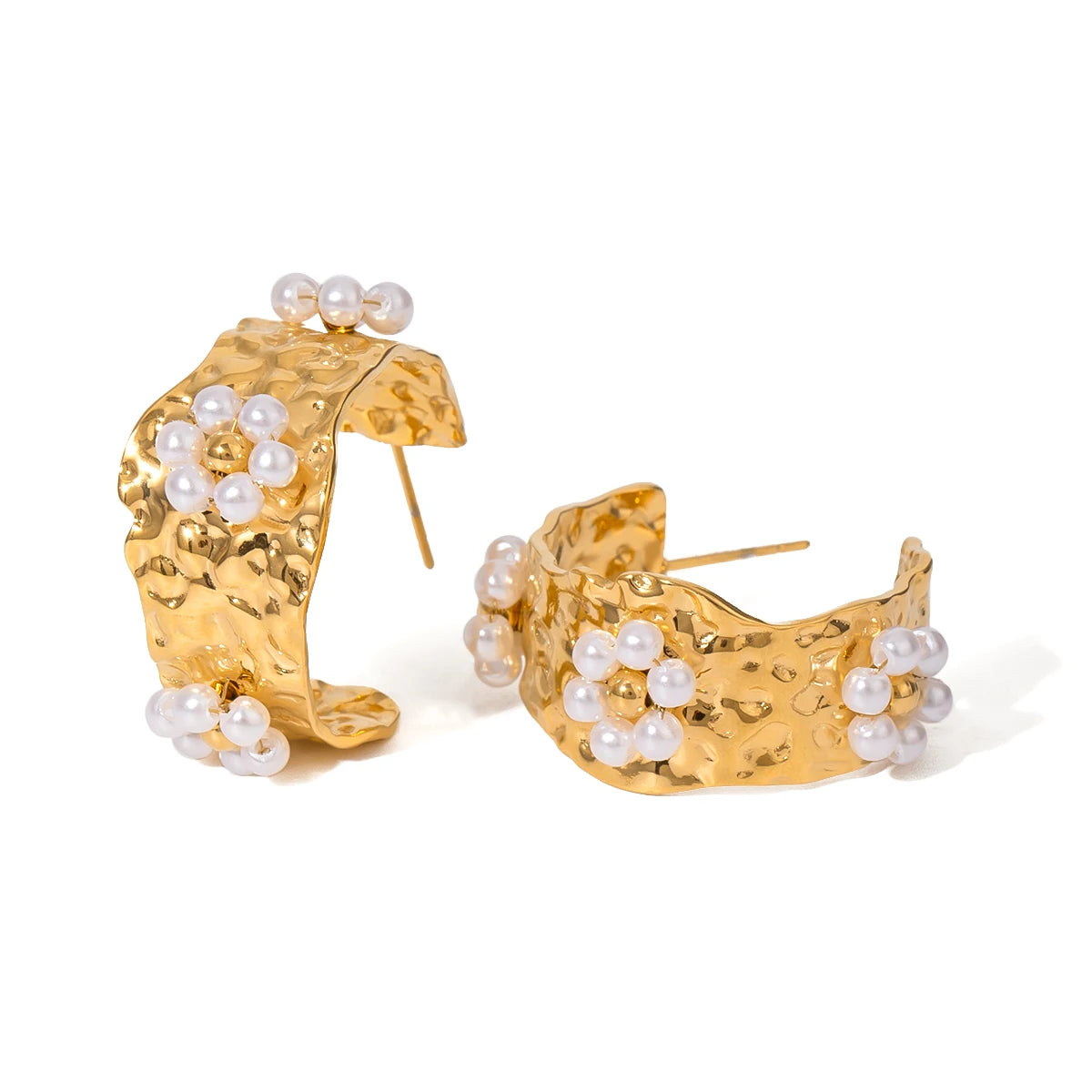 ステンレス304 低ニッケル 水に濡れても錆びにくい 18Kゴールドメッキ ピアス フラワー 花 【YJ03183】