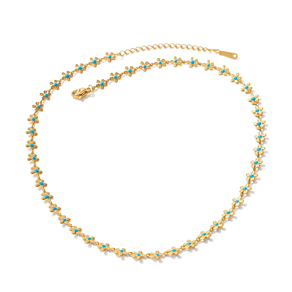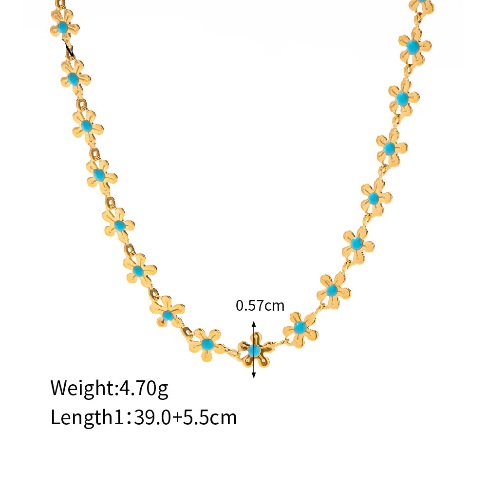 ステンレス304 低ニッケル 水に濡れても錆びにくい 18Kゴールドメッキ ネックレス フラワー 花 エナメル 【YJ03426】