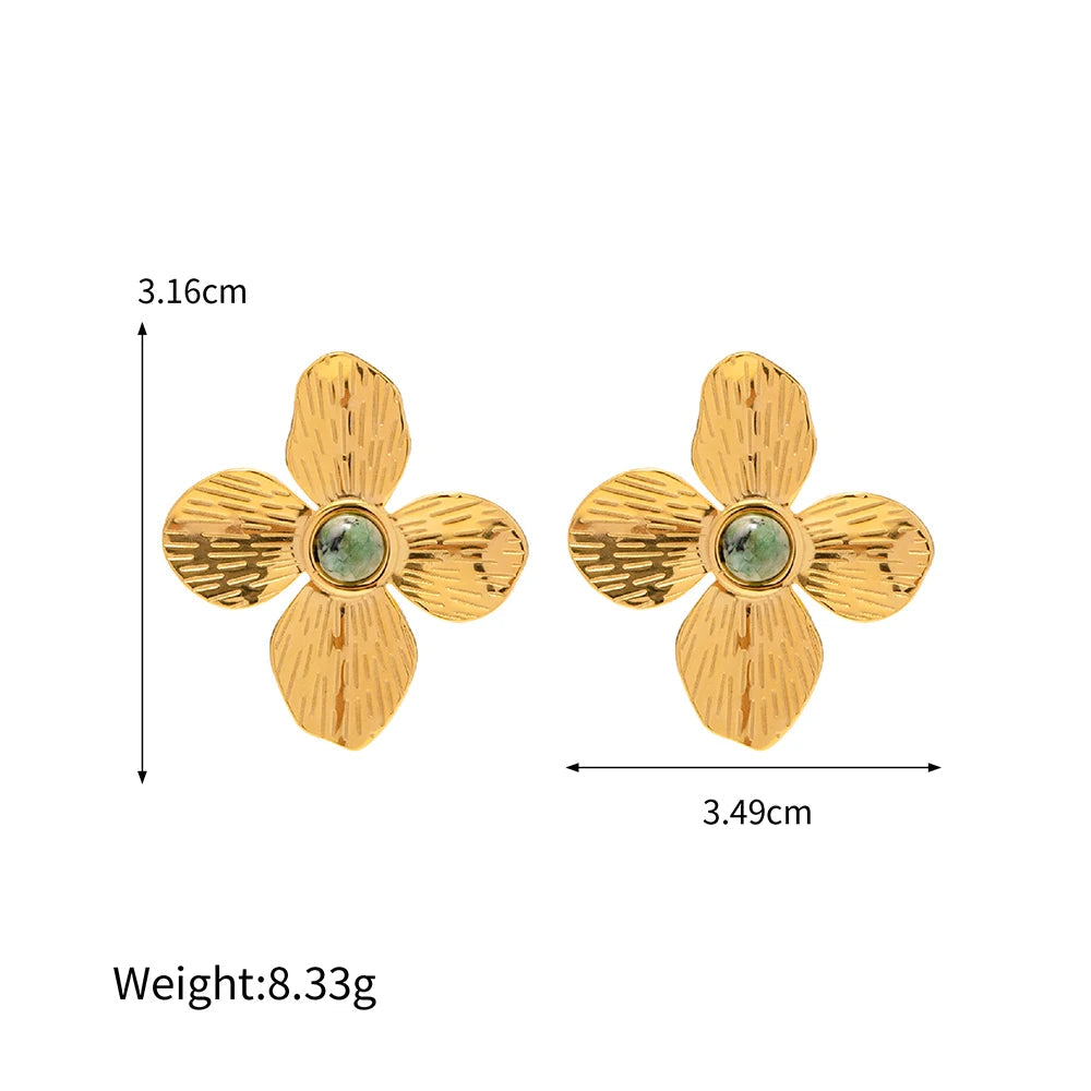ステンレス304 低ニッケル 水に濡れても錆びにくい 18Kゴールドメッキ ピアス フラワー 花 【YJ03448】