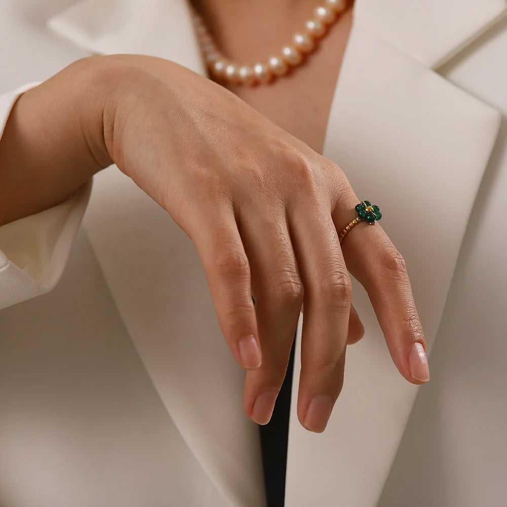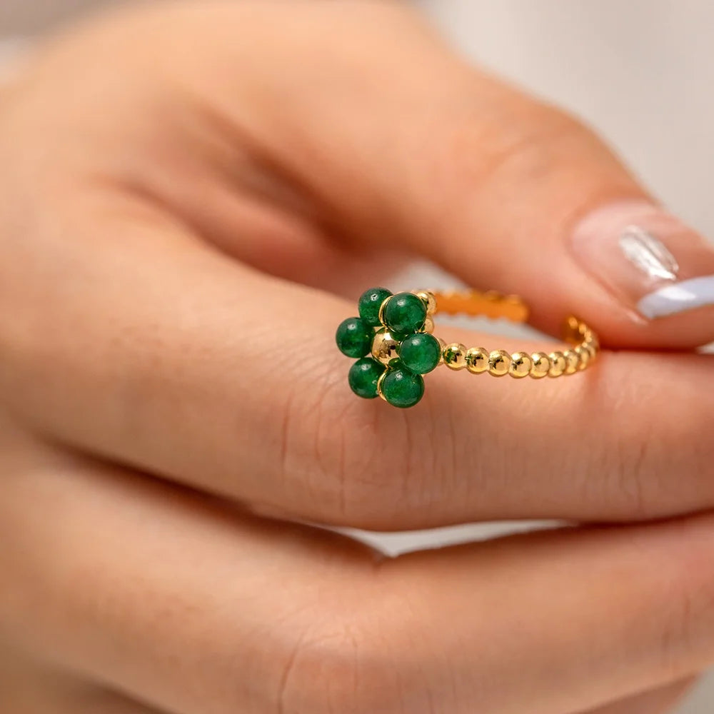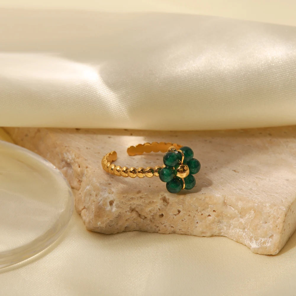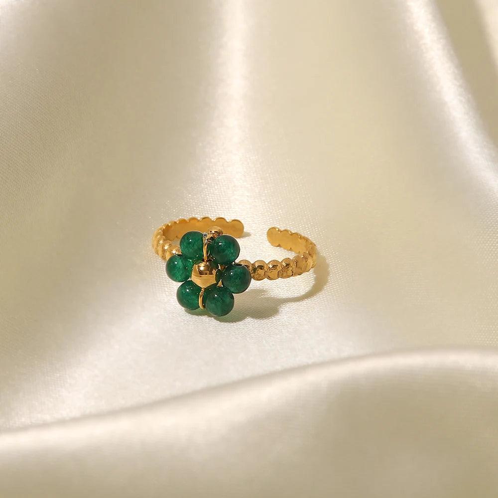 ステンレス304 低ニッケル 水に濡れても錆びにくい 18Kゴールドメッキ リング フラワー 花 ビーズ【YJ03655】