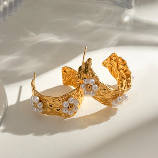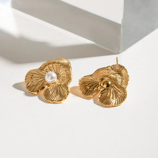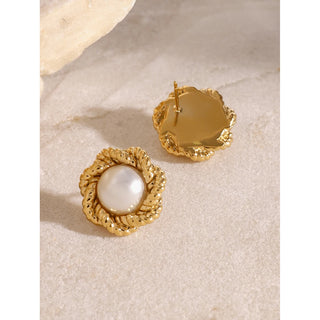 ステンレス304 低ニッケル 水に濡れても錆びにくい 18Kゴールドメッキ ピアス ツイスト フラワー 花 パール 【YJ03013】