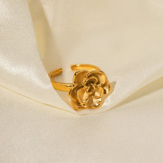 ステンレス304 低ニッケル 水に濡れても錆びにくい 18Kゴールドメッキ リング フラワー 花 【YJ03829】