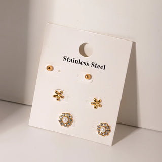 ステンレス304 低ニッケル 水に濡れても錆びにくい 18Kゴールドメッキ リング ティアドロップ フラワー 花 3点セット【YJ02709】