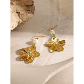 ステンレス304 低ニッケル 水に濡れても錆びにくい 18Kゴールドメッキ ピアス フラワー 花 バロックパール【YJ04024】