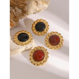 ステンレス304 低ニッケル 水に濡れても錆びにくい 18Kゴールドメッキ リング 天然石風ストーン 花 フラワー【YJ02870】