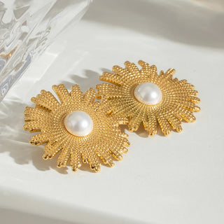 ステンレス304 低ニッケル 水に濡れても錆びにくい 18Kゴールドメッキ ピアス フラワー 花 パール 【YJ02675】