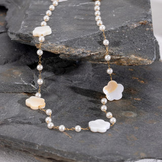 ステンレス304 低ニッケル 水に濡れても錆びにくい 18Kゴールドメッキ ネックレス シェル フラワー 花 【YJ02651】