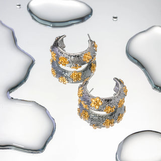ステンレス304 低ニッケル 水に濡れても錆びにくい 18Kゴールドメッキ ピアス フープ フラワー 花 【YJ03973】