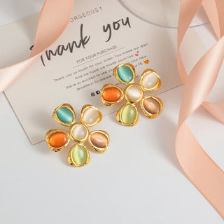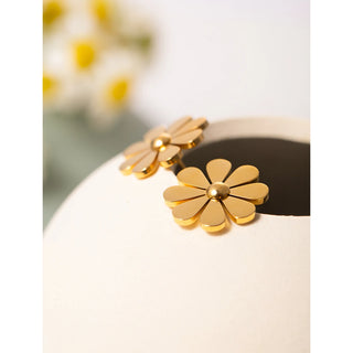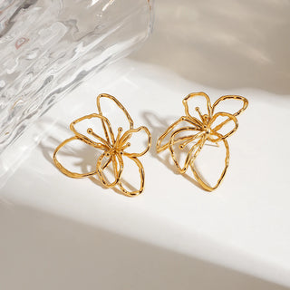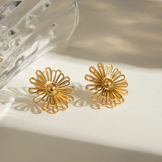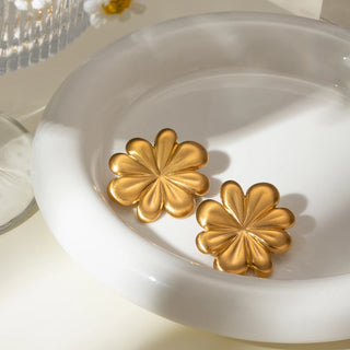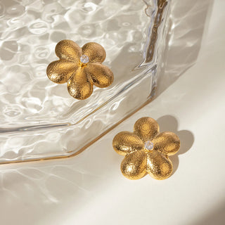 ステンレス304 低ニッケル 水に濡れても錆びにくい 18Kゴールドメッキ ピアス チャンキー フラワー 花 【YJ02115】