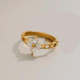 ステンレス304 低ニッケル 水に濡れても錆びにくい 18Kゴールドメッキ リング フラワー 花 ジルコニア 【YJ01970】