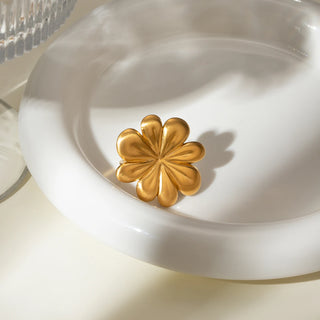 ステンレス304 低ニッケル 水に濡れても錆びにくい 18Kゴールドメッキ リング フラワー 花 【YJ03512】