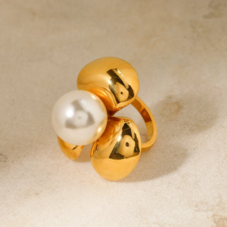 ステンレス304 低ニッケル 水に濡れても錆びにくい 18Kゴールドメッキ リング フラワー 花 パール 【YJ03499】