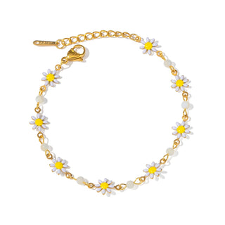 ステンレス304 低ニッケル 水に濡れても錆びにくい 18Kゴールドメッキ ブレスレット フラワー 花 パール 【YJ03532】