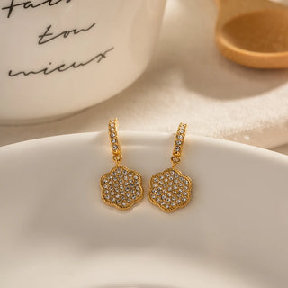 ステンレス304 低ニッケル 水に濡れても錆びにくい 18Kゴールドメッキ ピアス フラワー 花 ジルコニア 【YJ03439】