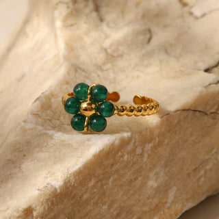 ステンレス304 低ニッケル 水に濡れても錆びにくい 18Kゴールドメッキ リング フラワー 花 ビーズ【YJ03655】