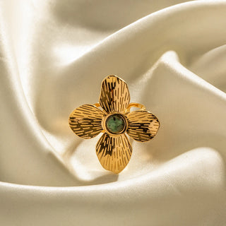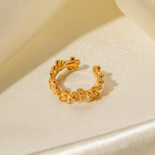 ステンレス304 低ニッケル 水に濡れても錆びにくい 18Kゴールドメッキ リング フラワー 花 【YJ03082】