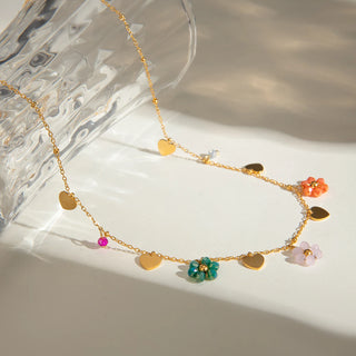 ステンレス304 低ニッケル 水に濡れても錆びにくい 18Kゴールドメッキ ネックレス チャーム ハート フラワー 花 【YJ02126】