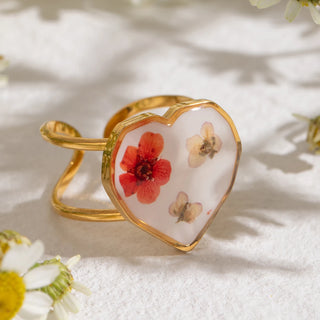 ステンレス304 低ニッケル 水に濡れても錆びにくい 18Kゴールドメッキ リング ハート フラワー 花 レジン【YJ03371】